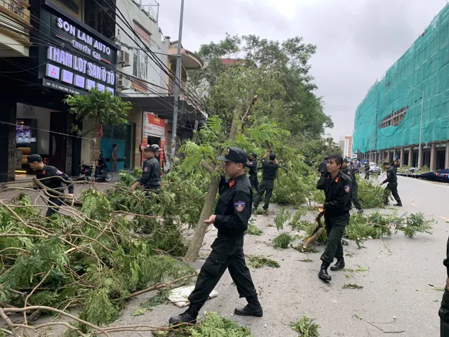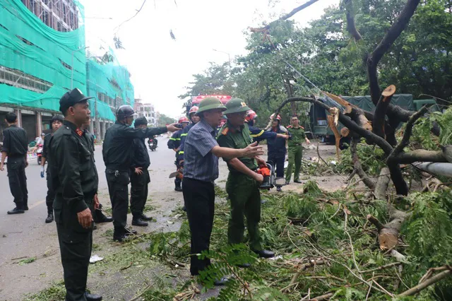 Đến chiều cùng ngày, khi tiến hành chặt, cắt cành, cây gẫy đổ trên tuyến đường Lê Thanh Tông (tuyến đường có mật độ cây cổ thụ gẫy đổ rất lớn), Đại tá Hoàng Văn Nam - Trưởng Phòng Cảnh sát cơ động Công an TP đã cùng các đồng chí Phó Trưởng phòng trực tiếp có mặt chỉ huy, hướng dẫn lực lượng triển khai nhiệm vụ, tổ chức chặt, cắt, thu gom, dọn dẹp cành cây gọn vào lề đường theo phương châm chặt, cắt đến đâu thu gom, dọn dẹp gọn đến đó để tạo thuận lợi cho việc bốc xếp, vận chuyển của đơn vị chức năng, nhanh chóng giải tỏa, trả lại mặt đường thông thoáng cho các phương tiện được lưu thông, qua lại dễ dàng, bảo đảm an toàn.