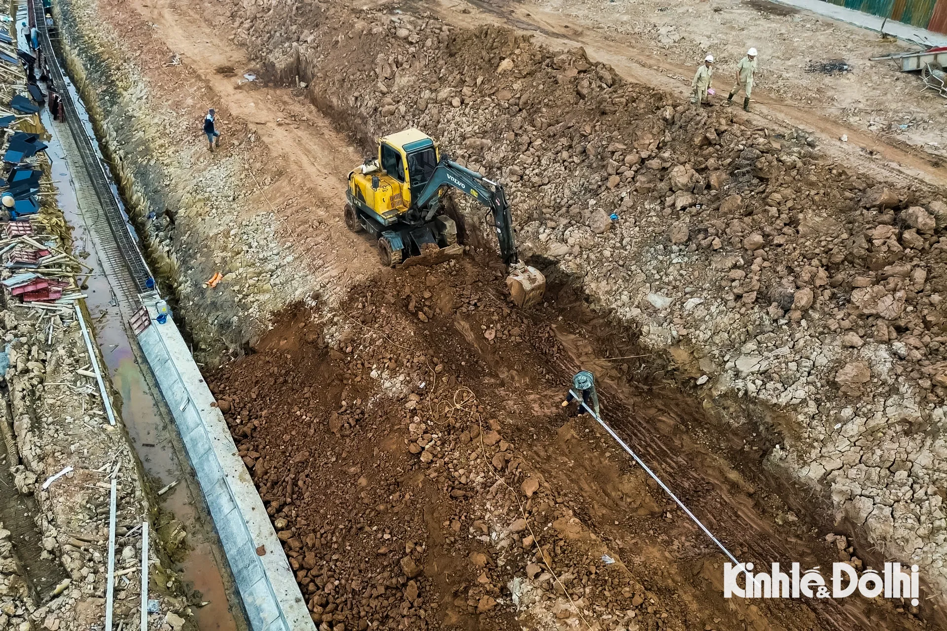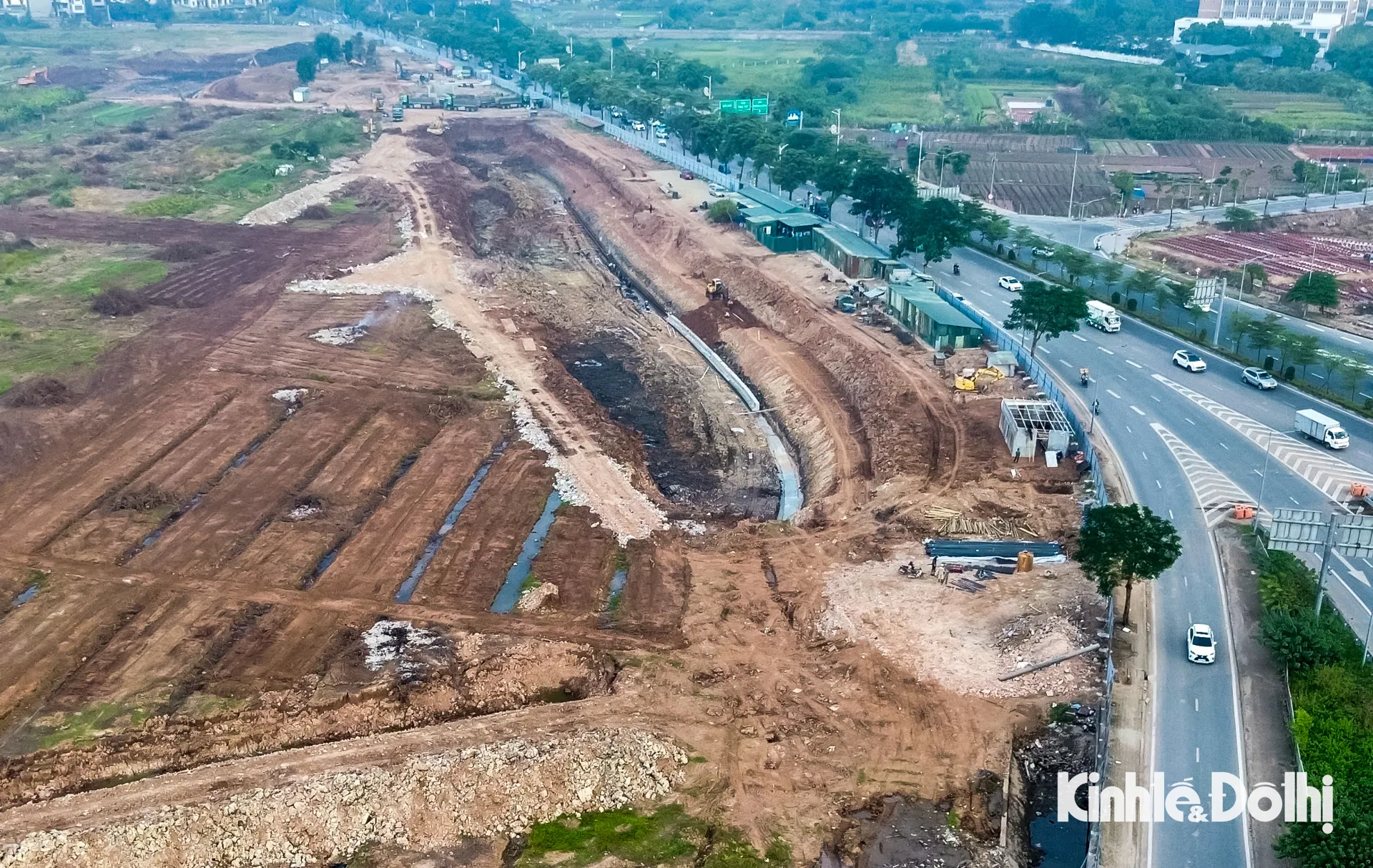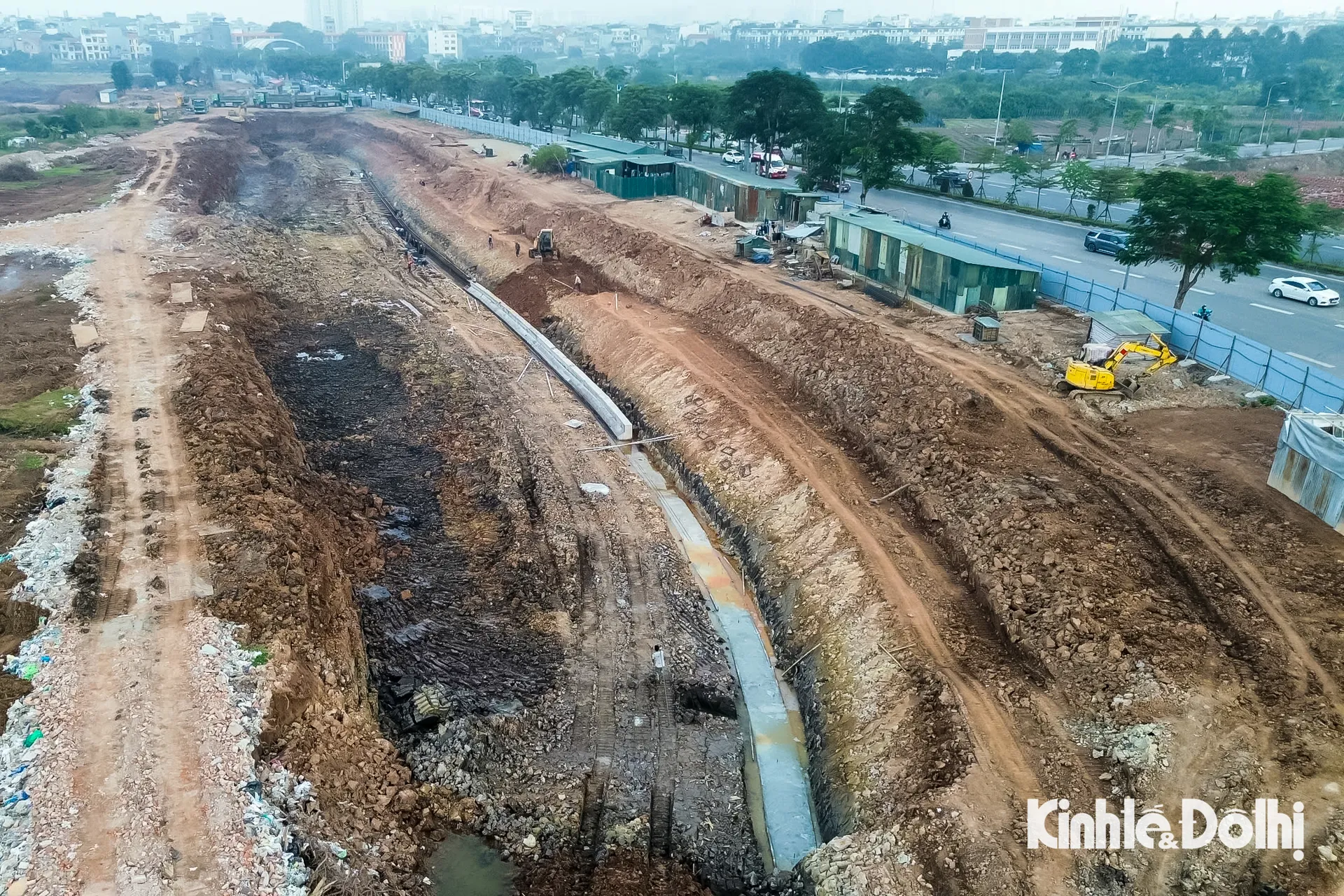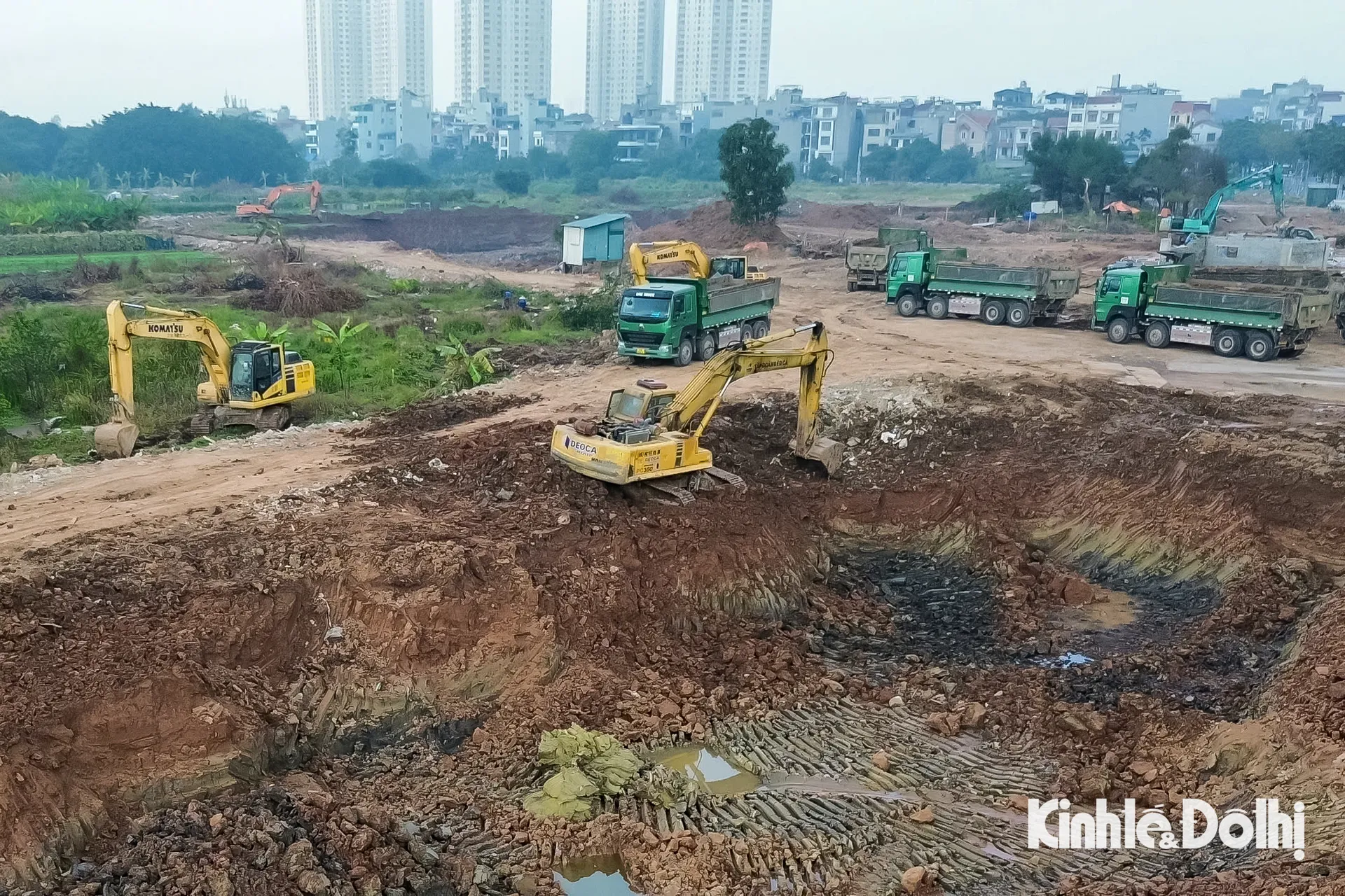 Toàn cảnh công trường thi công hồ điều hòa gần 1.000 tỷ đồng tại Long Biên