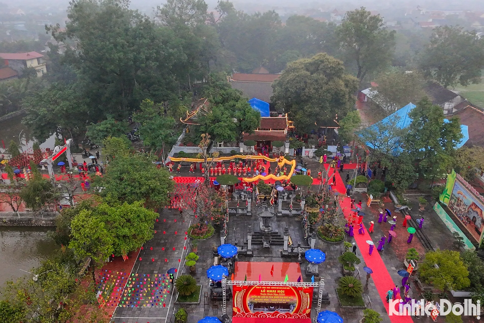 Bí thư Đảng uỷ, Chủ tịch HĐND xã Hát Môn Nguyễn Đình Sơn đánh trống khai hội. Tiếng trống khai hội vang lên giữa sân đền, gợi nhớ hào khí Mê Linh gần 2.000 năm trước. Âm vang trống hội như nhịp cầu nối quá khứ – hiện tại – tương lai. Tiếng trống đầu xuân không chỉ mở hội mà còn nhắc nhở mỗi người dân về giá trị Độc lập – Tự do – Hòa bình, thôi thúc chung sức dựng xây quê hương ngày càng phát triển.