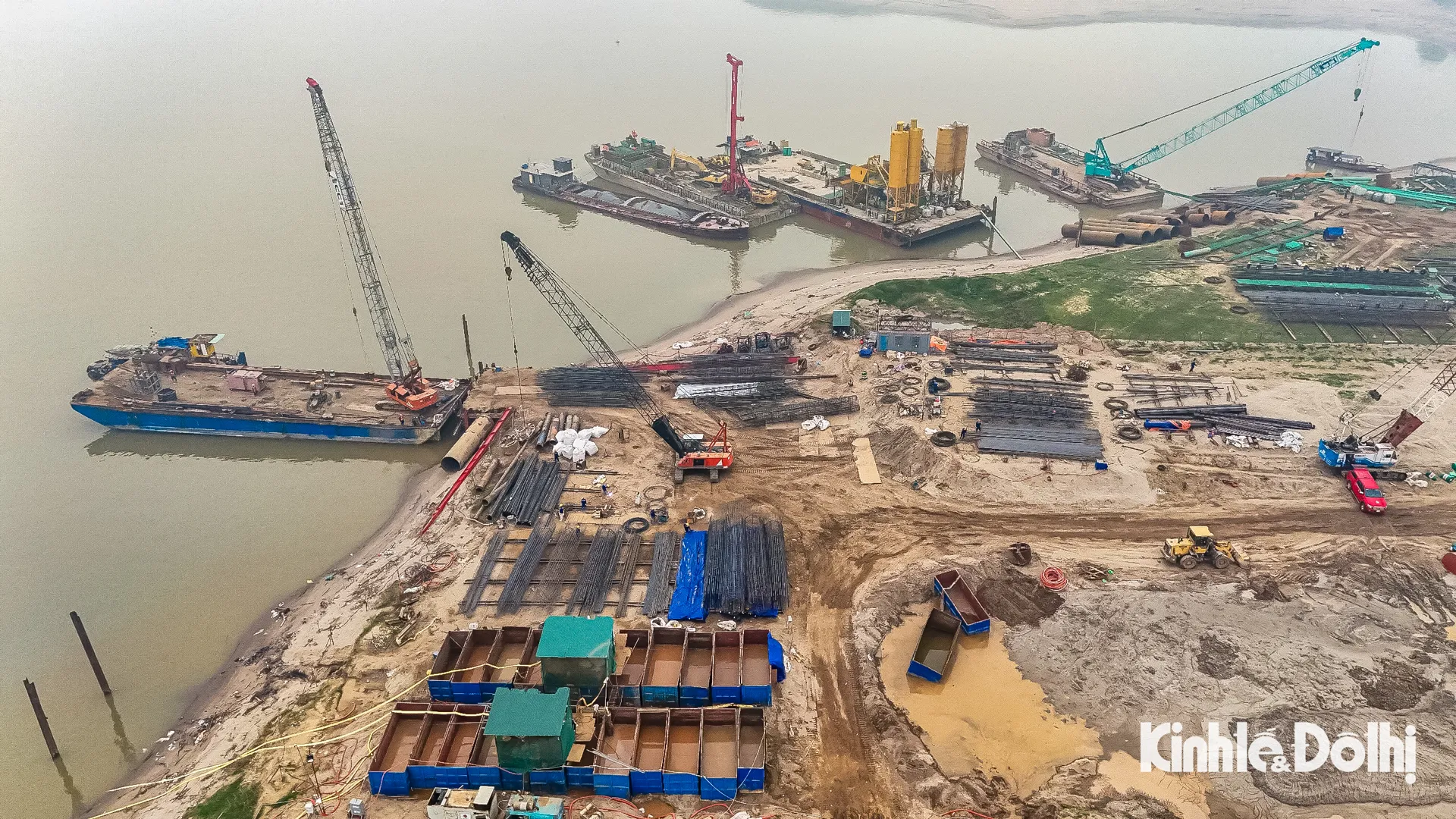 Kinhtedothi - Cầu Hồng Hà, hạng mục trọng điểm của Vành đai 4 đang được các nhà thầu đẩy nhanh tiến độ thi công với hàng loạt hạng mục như khoan cọc nhồi, lắp dầm thép, san nền diễn ra đồng loạt. Công trình có mức đầu tư gần 10.000 tỷ đồng, dự kiến hoàn thành sau 3 năm.