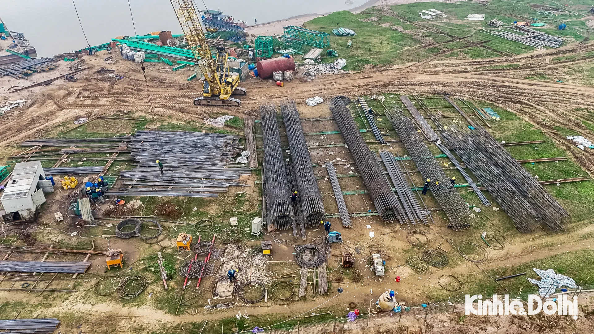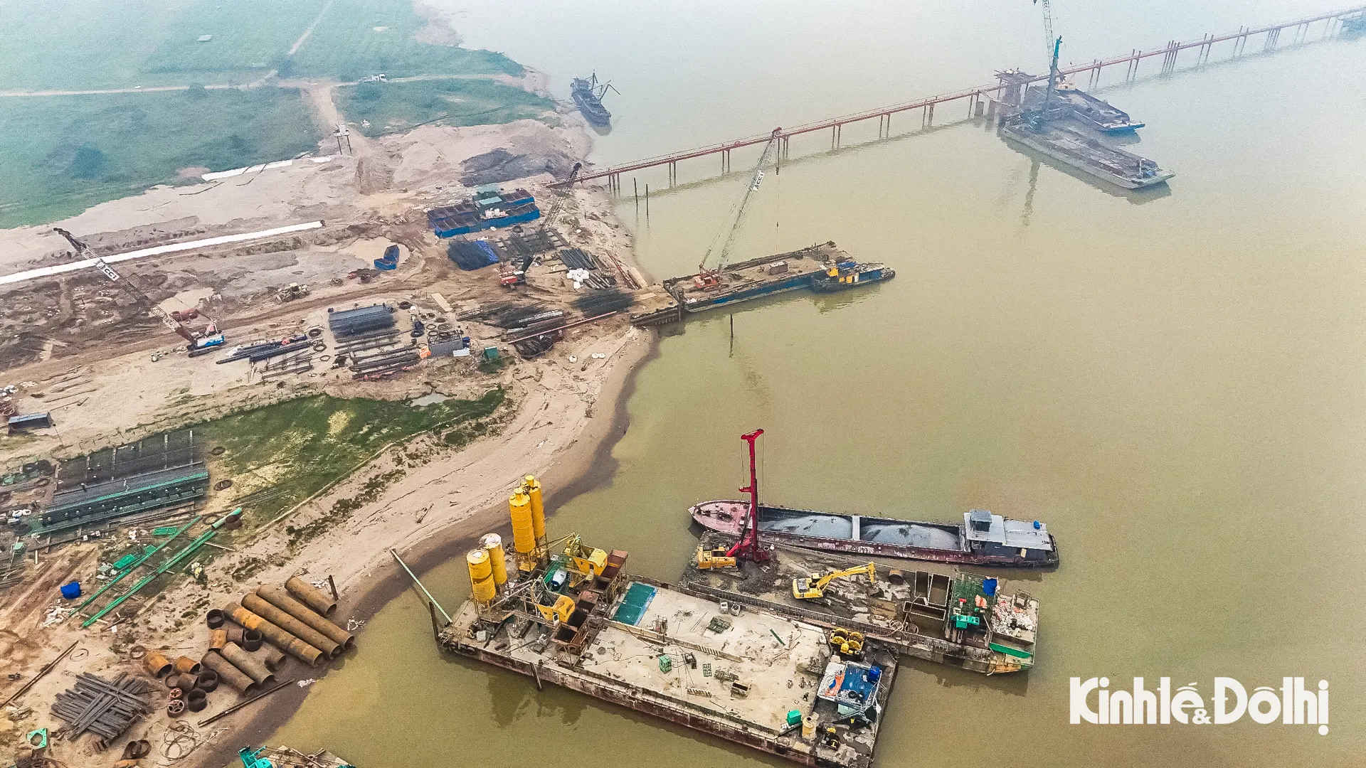 Toàn cảnh tiến độ thi công cầu Hồng Hà thuộc Vành đai 4