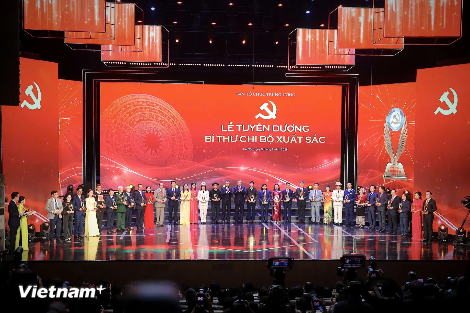 Tuyên dương tập thể các Bí thư chi bộ xuất sắc, làm tốt các nhiệm vụ trong năm 2025. (Ảnh: Hoài Nam/Vietnam+)