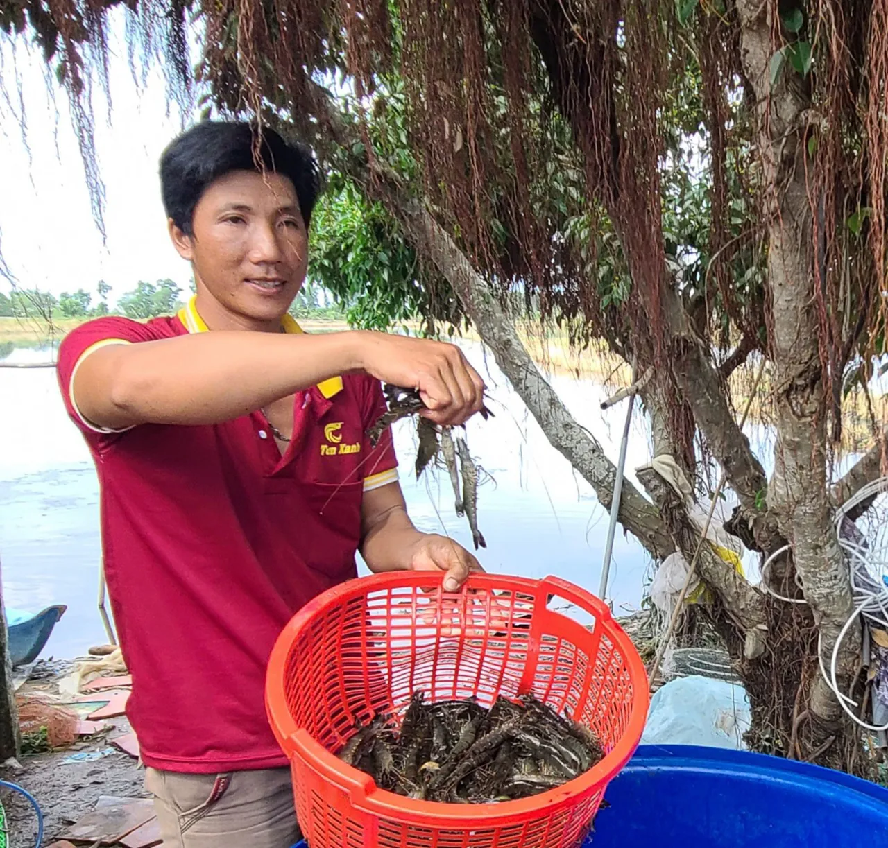 Tôm sú hữu cơ trên vùng đất nhiễm phèn nặng xã Thới Bình tỉnh Cà Mau. Ảnh Hoàng Nam