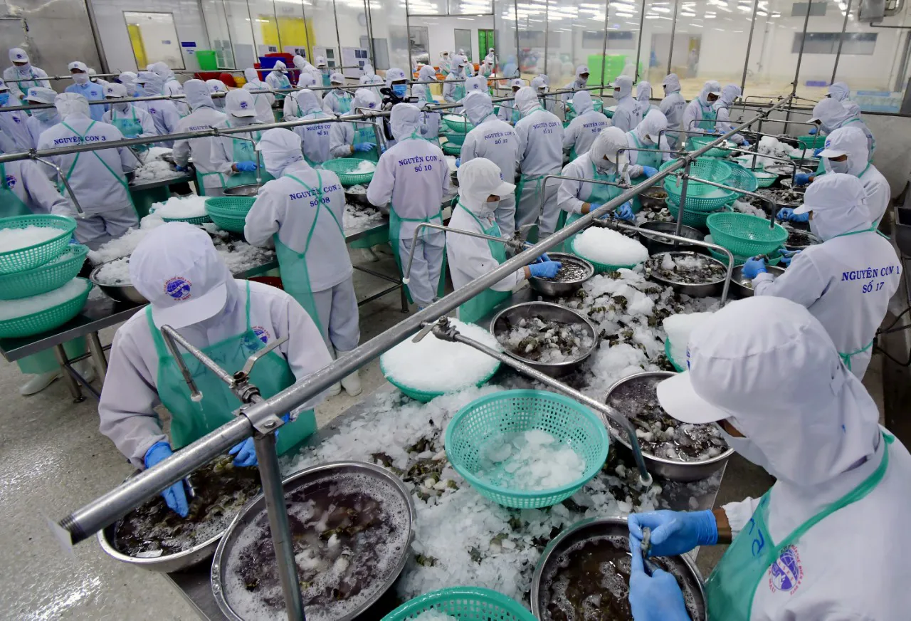 Bên trong một nhà máy chế biến tôm sú xuất khẩu ở Cà Mau. Hàng chục năm nay, mặt hàng này mang về cho Cà Mau hàng tỷ USD. Ảnh Hoàng Nam