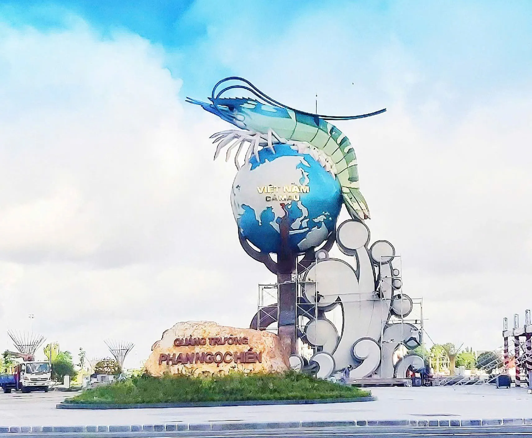 Biểu tượng con tôm sú ở Quảng trường Phan Ngọc Hiển, phường An Xuyên, tỉnh Cà Mau. Ảnh Hoàng Nam