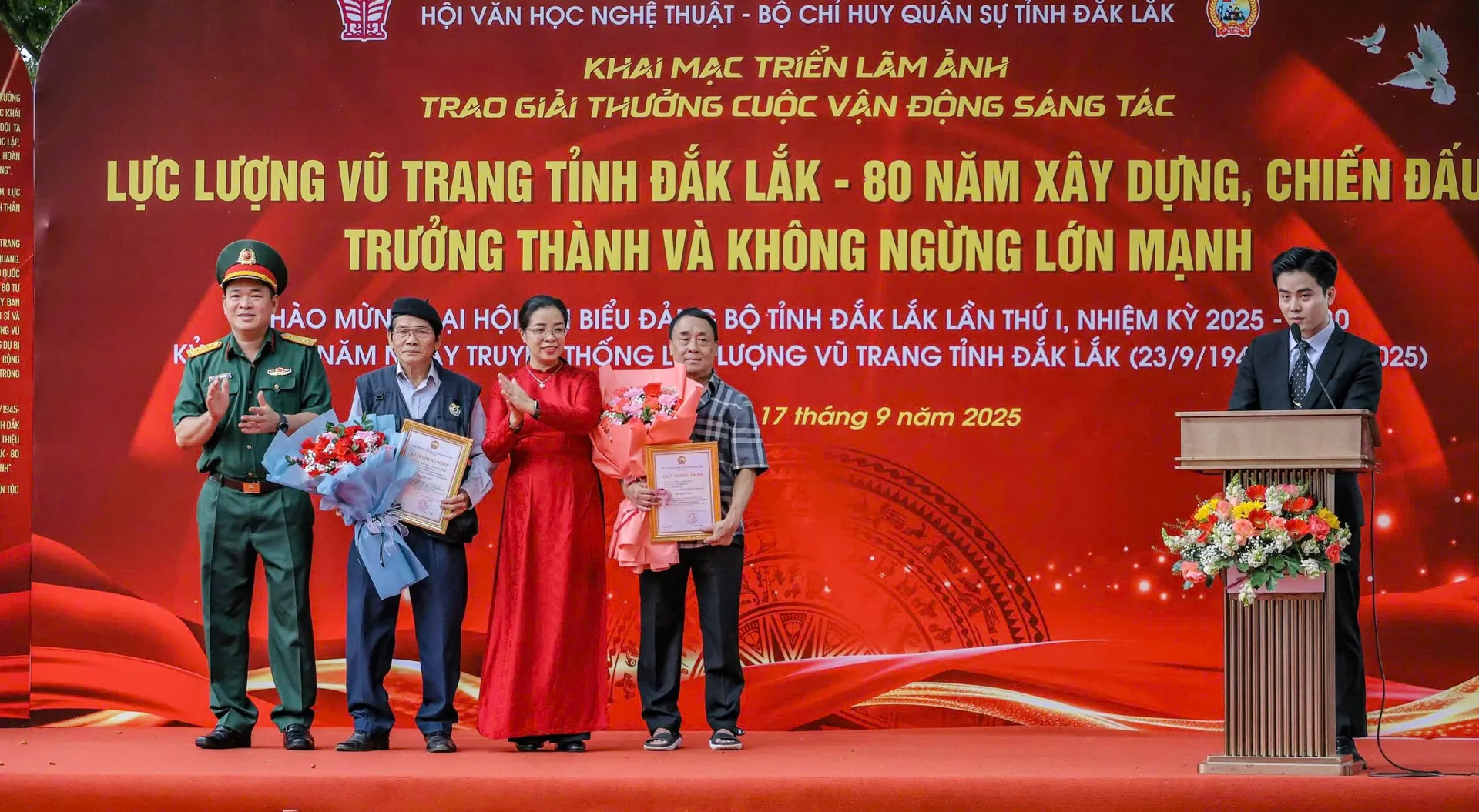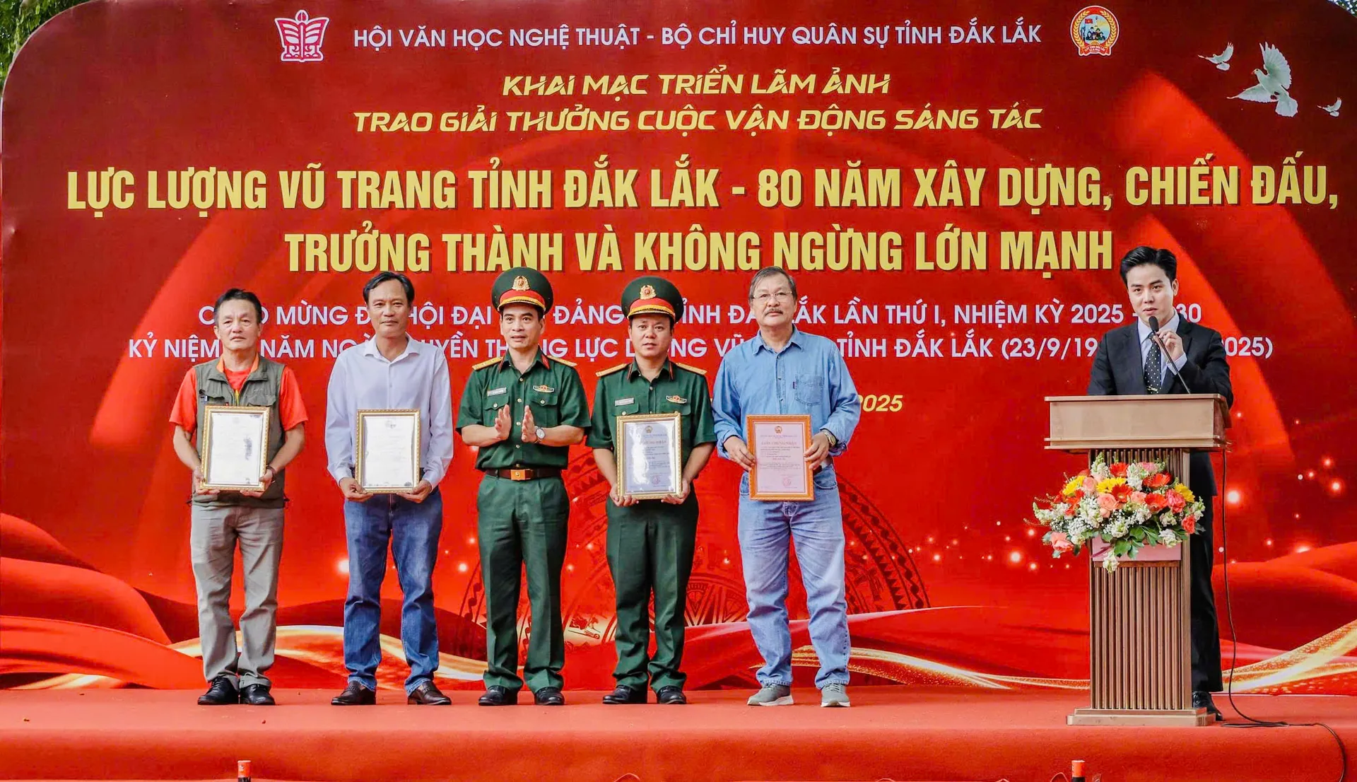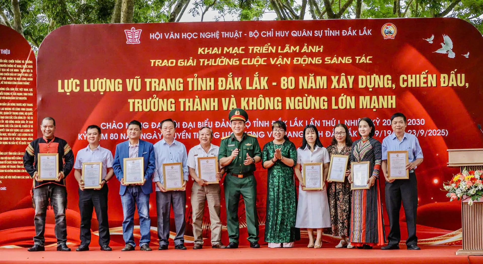 Kinhtedothi - Hội Văn học nghệ thuật tỉnh Đắk Lắk và Bộ Chỉ huy Quân sự tỉnh Đắk Lắk vừa phối hợp tổ chức lễ trao giải và triển lãm ảnh đầy ý nghĩa, tôn vinh chặng đường 80 năm xây dựng, chiến đấu và trưởng thành của lực lượng vũ trang (LLVT) tỉnh.
