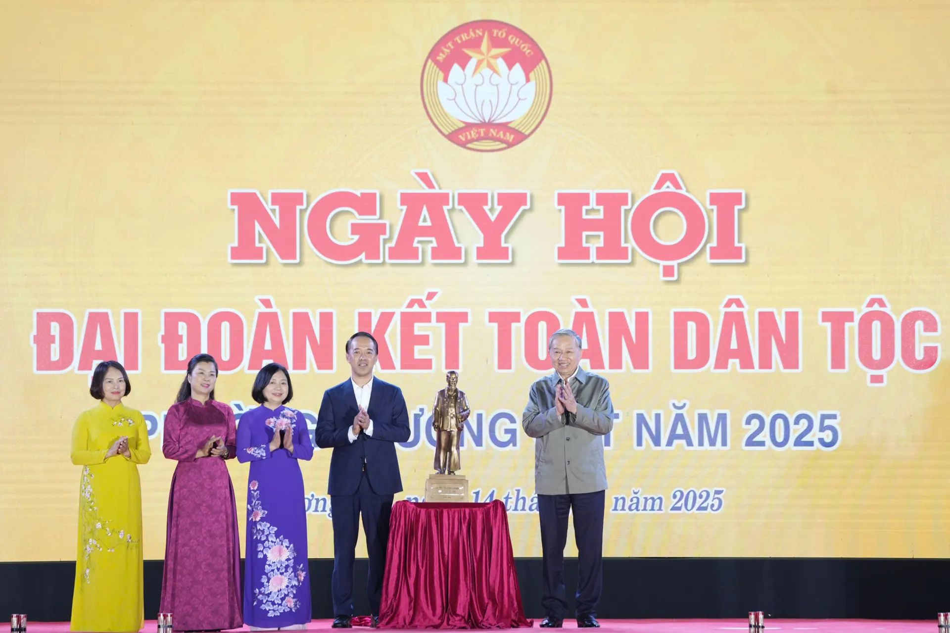Nhân ngày hội, Tổng Bí thư Tô Lâm kêu gọi đồng bào, đồng chí, chiến sĩ cả nước; cộng đồng người Việt Nam ở nước ngoài, cùng nhau gìn giữ, bồi đắp và phát huy hơn nữa sức mạnh đại đoàn kết toàn dân tộc. “Hãy biến tinh thần ấy thành hành động hôm nay: trong gia đình, tổ dân phố; trong nhà máy, cánh đồng; lớp học, bệnh viện; trên biển khơi và trên không gian số, tất cả vì Tổ quốc Việt Nam thân yêu; vì hạnh phúc của Nhân dân; vì mục tiêu 2030 và khát vọng 2045 Nhân dân đang mong chờ” - Tổng Bí thư nhấn mạnh.