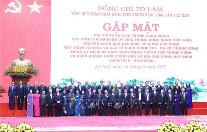 Nhân kỷ niệm 80 năm Cách mạng Tháng Tám thành công (19/8/1945 -19/8/2025) và Quốc khánh nước Cộng hòa xã hội chủ nghĩa Việt Nam (2/9/1945 -2/9/2025), sáng 18/8, tại Hà Nội, Tổng Bí thư Tô Lâm đã gặp mặt các đồng chí lão thành cách mạng, nguyên Ủy viên Trung ương Đảng các khóa, nguyên lãnh đạo các ban, cơ quan của Đảng, Mặt trận Tổ quốc và các tổ chức chính trị - xã hội Trung ương.