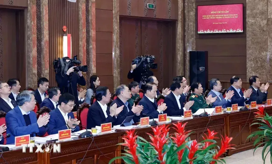 Tổng Bí thư Tô Lâm biểu dương những kết quả khá toàn diện của Thủ đô đã đạt được trong thời gian qua, nhất là trong việc giải quyết những vấn đề quốc kế dân sinh, liên quan trực tiếp đến đời sống của Nhân dân