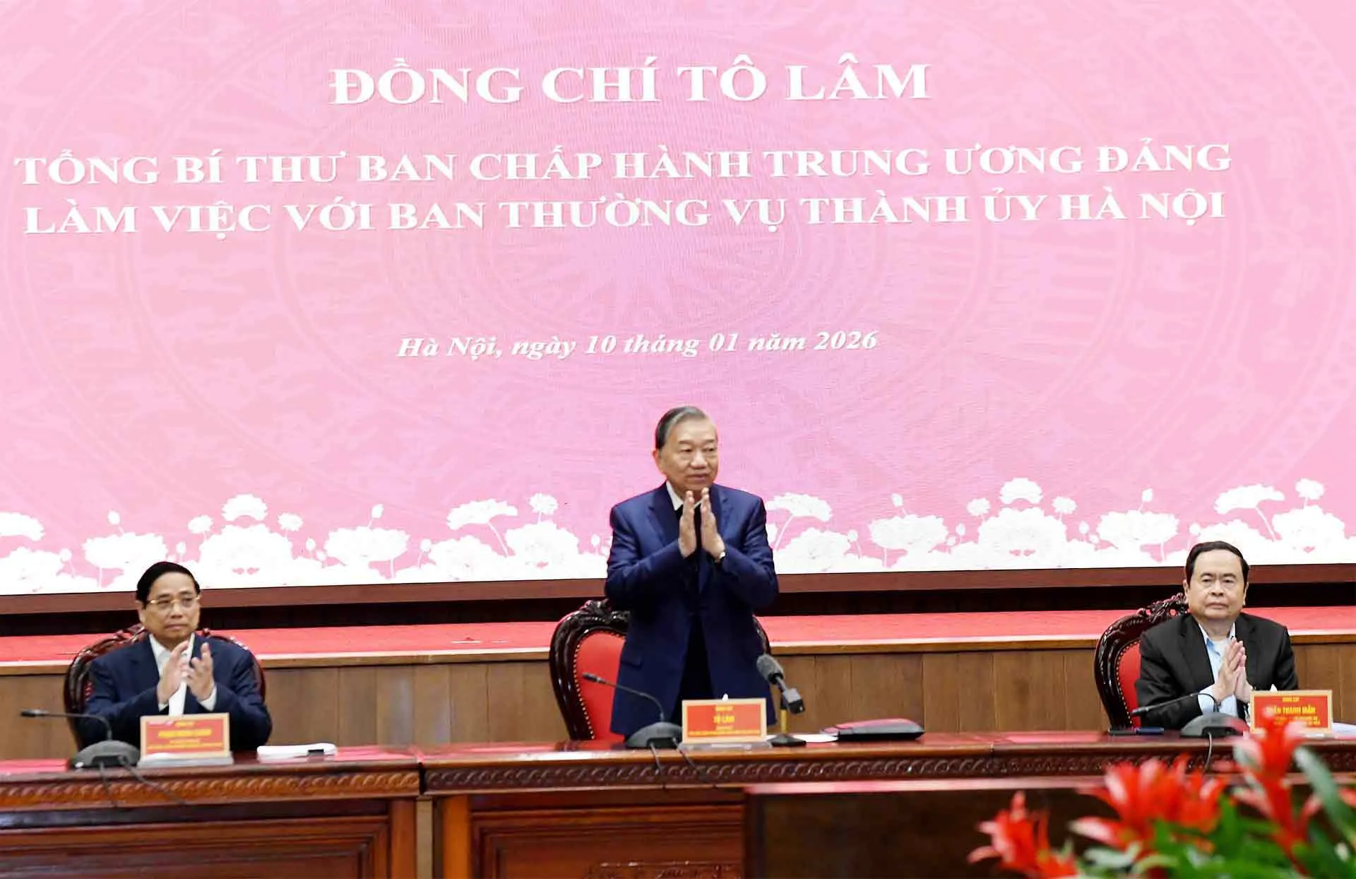 Đây là lần đầu tiên trong nhiệm kỳ Đại hội XIII, ba đồng chí lãnh đạo Đảng, Nhà nước cùng làm việc với TP Hà Nội và là cuộc làm việc đầu tiên trong năm 2026 của lãnh đạo Đảng, Nhà nước với Hà Nội, thể hiện sự quan tâm đặc biệt đối với Đảng bộ, chính quyền và Nhân dân Thủ đô. Chuyến thăm, làm việc của các đồng chí lãnh đạo Đảng, Nhà nước và đoàn công tác là điều kiện để Ban Thường vụ Thành ủy báo cáo, xin ý kiến nhằm tiếp thu, hoàn thiện các dự thảo nội dung quan trọng nêu trên trước khi tiến hành các bước trình cấp có thẩm quyền xem xét theo quy định.