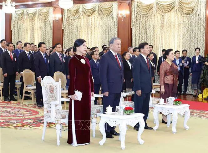 Dự buổi lễ có: Tổng Bí thư Tô Lâm và Phu nhân, cùng Tổng Bí thư, Chủ tịch nước Lào Thongloun Sisoulith và Phu nhân; Đoàn đại biểu cấp cao hai nước Việt Nam và Lào.