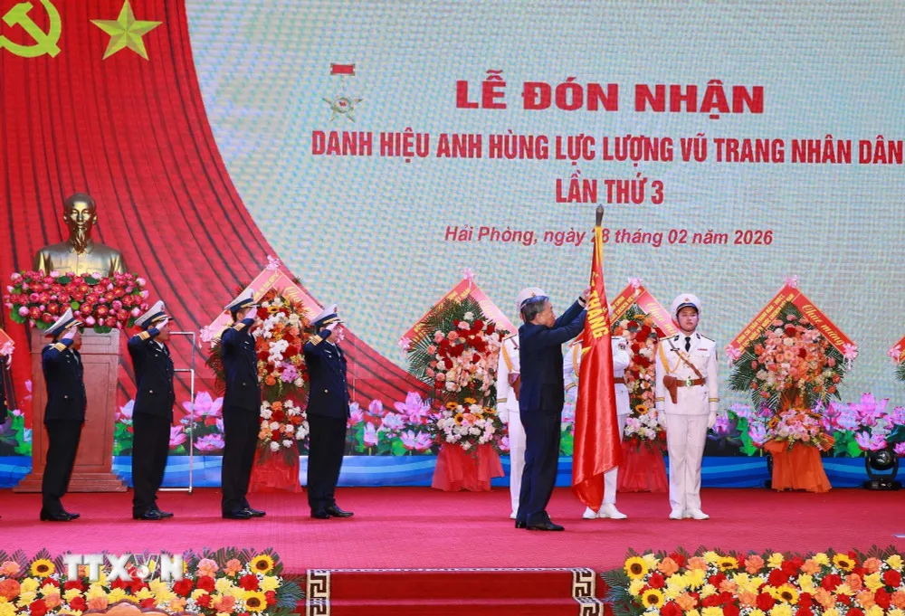 Tại buổi lễ, Tổng Bí thư Tô Lâm, Bí thư Quân ủy Trung ương đã trao tặng danh hiệu Anh hùng Lực lượng vũ trang nhân dân (lần thứ 3) cho Quân chủng Hải quân, Bộ Quốc phòng./.