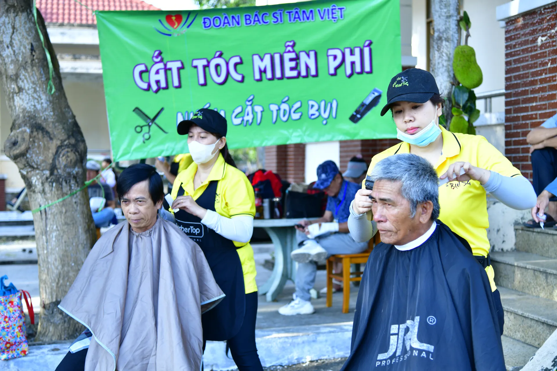 Ngoài việc khám bệnh, phát thuốc miễn phí, Đoàn bác sĩ Tâm Việt còn cắt tóc cho người dân.