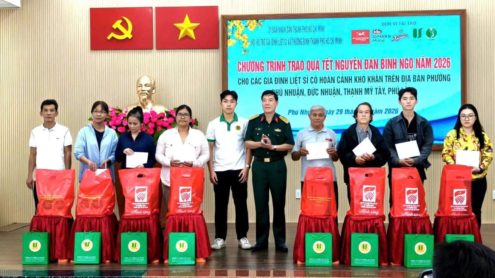 Ngày 29/1, tại Ủy ban MTTQ Việt Nam phường Phú Nhuận (TP Hồ Chí Minh), Hội Hỗ trợ gia đình liệt sĩ và thương binh TP tổ chức trao 45 phần quà Tết (trị giá 2 triệu đồng/phần) cho các gia đình liệt sĩ có hoàn cảnh khó khăn trên địa bàn 4 phường: Phú Nhuận, Đức Nhuận, Thạnh Mỹ Tây và Phú Lâm.