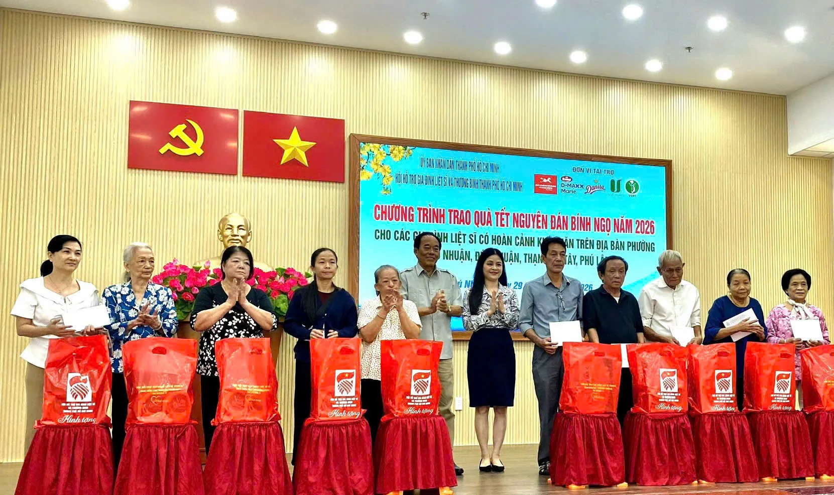 Kinhtedothi - Trong không khí phấn khởi chào mừng 96 năm Ngày thành lập Đảng Cộng sản Việt Nam (3/2/1930 – 3/2/2026), hòa cùng niềm vui đón Xuân Bính Ngọ 2026, Hội Hỗ trợ gia đình liệt sĩ và thương binh TP Hồ Chí Minh tổ chức trao quà Tết đầy nghĩa tình cho các gia đình liệt sĩ có hoàn cảnh khó khăn.