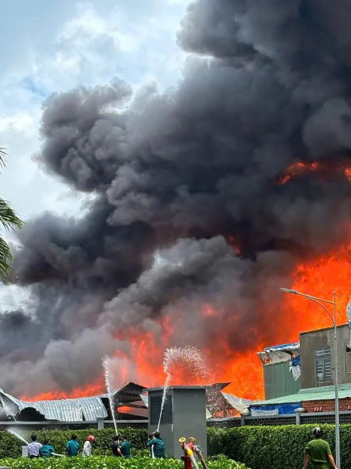 Theo ghi nhận tại hiện trường, ngọn lửa bùng phát dữ dội kèm nhiều tiếng nổ, nhanh chóng lan rộng ra toàn bộ khu nhà xưởng. Đám cháy xảy ra gần khu dân cư và các tòa chung cư cao tầng, khiến người dân lo lắng, nhiều hộ phải di chuyển đồ đạc ra ngoài để đề phòng cháy lan.