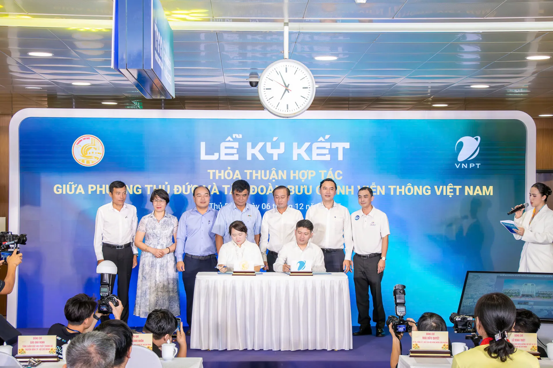Chủ tịch UBND phường Thủ Đức Nguyễn Thị Mai Trinh ký thỏa thuận hợp tác với đại diện Tập đoàn VNPT. Ảnh: Nguyễn Linh