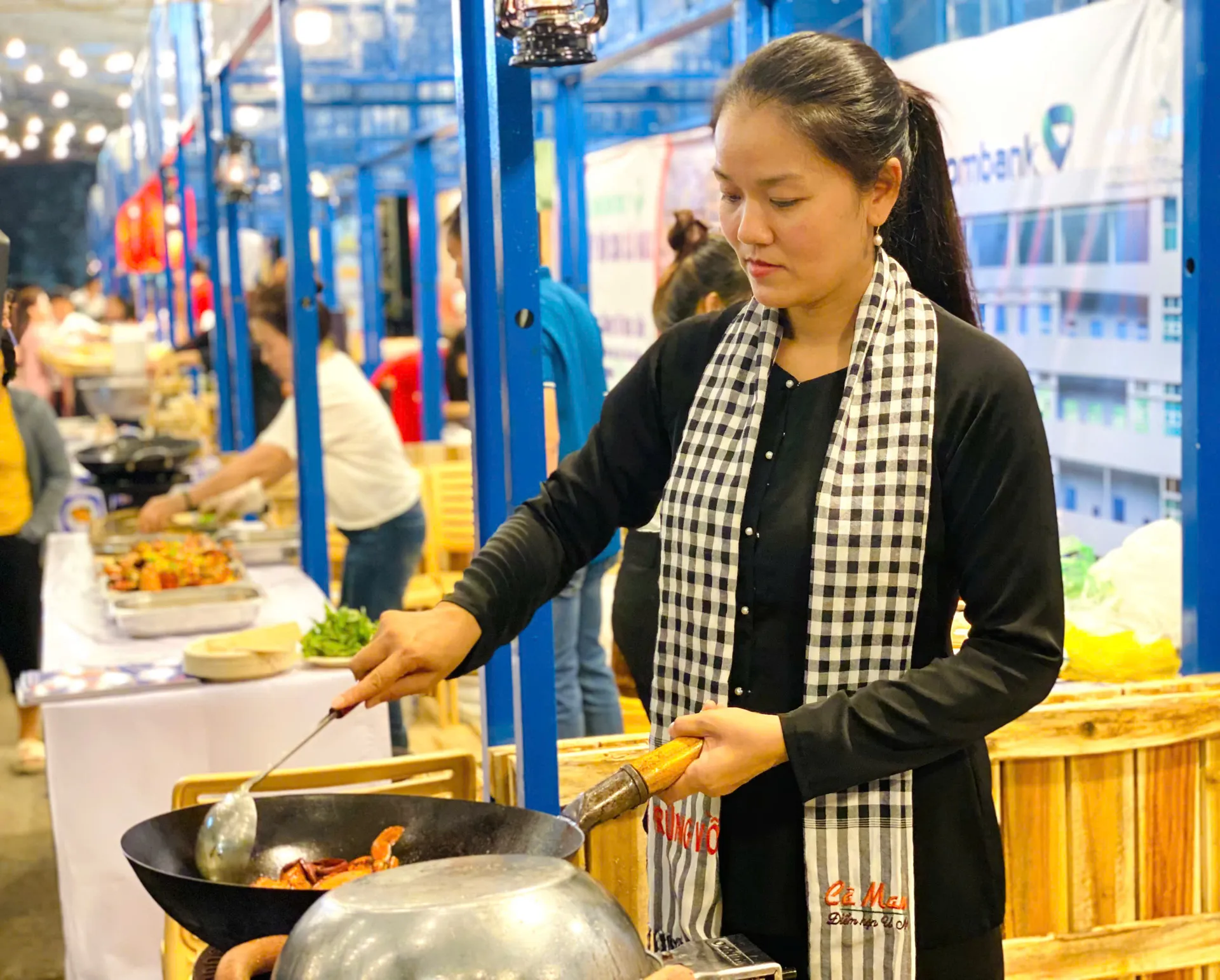 Trong lễ hội ẩm thực cua Cà Mau 2025 có nhiều gian hàng trưng bày sản phẩm OCOP.