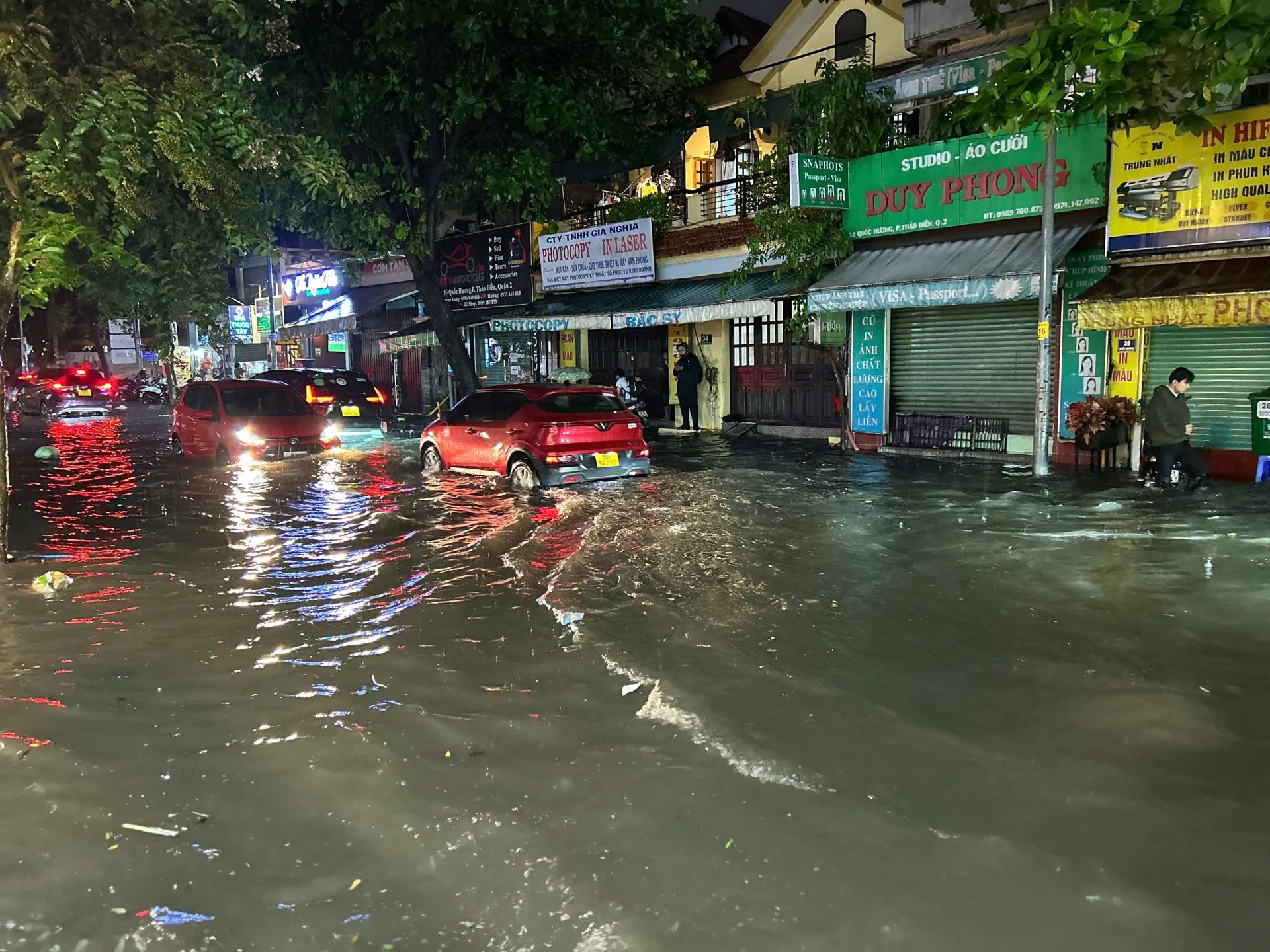 Đến sau 21 giờ tối 8/10, nước vẫn chưa rút trên một số tuyến đường.