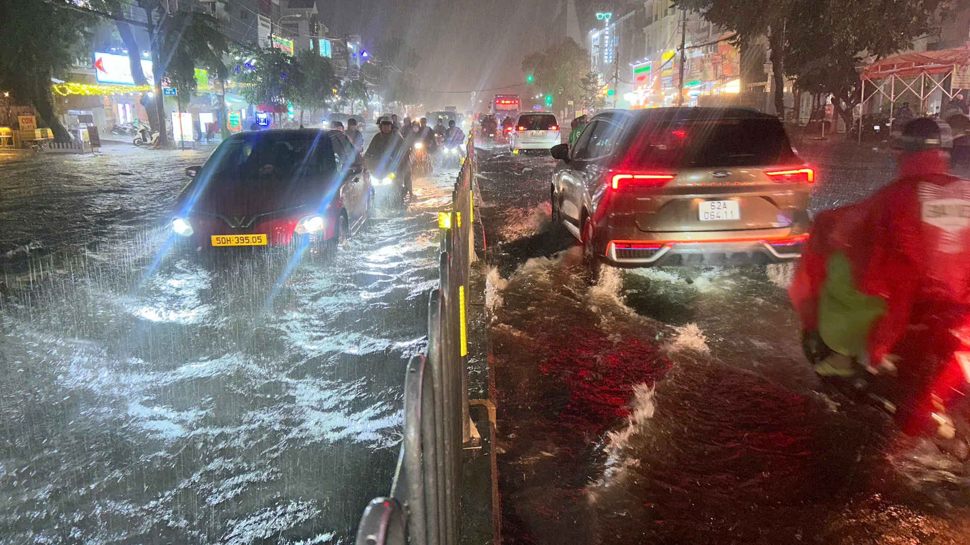 Nhiều tuyến đường ở TP Hồ Chí Minh ngập nặng sau trận mưa kéo dài từ chiều đến sau 20 giờ tối.