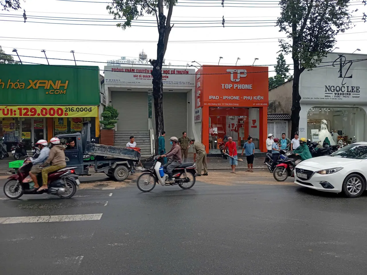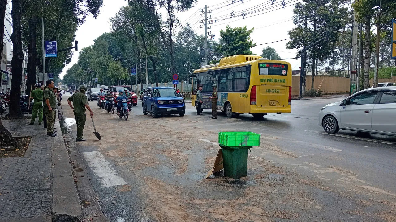 Ngay sau khi nhận tin báo, UBND phường Thủ Dầu Một đã huy động dân quân tự vệ, Công an phường và nhân viên đô thị đến rải cát, thu gom dầu trên mặt đường để tránh xảy ra thêm tai nạn. Đến đầu giờ chiều, lực lượng chức năng vẫn đang làm việc tại hiện trường, vừa thu dọn, vừa trích xuất camera khu vực để truy tìm “thủ phạm” đổ dầu ra đường.