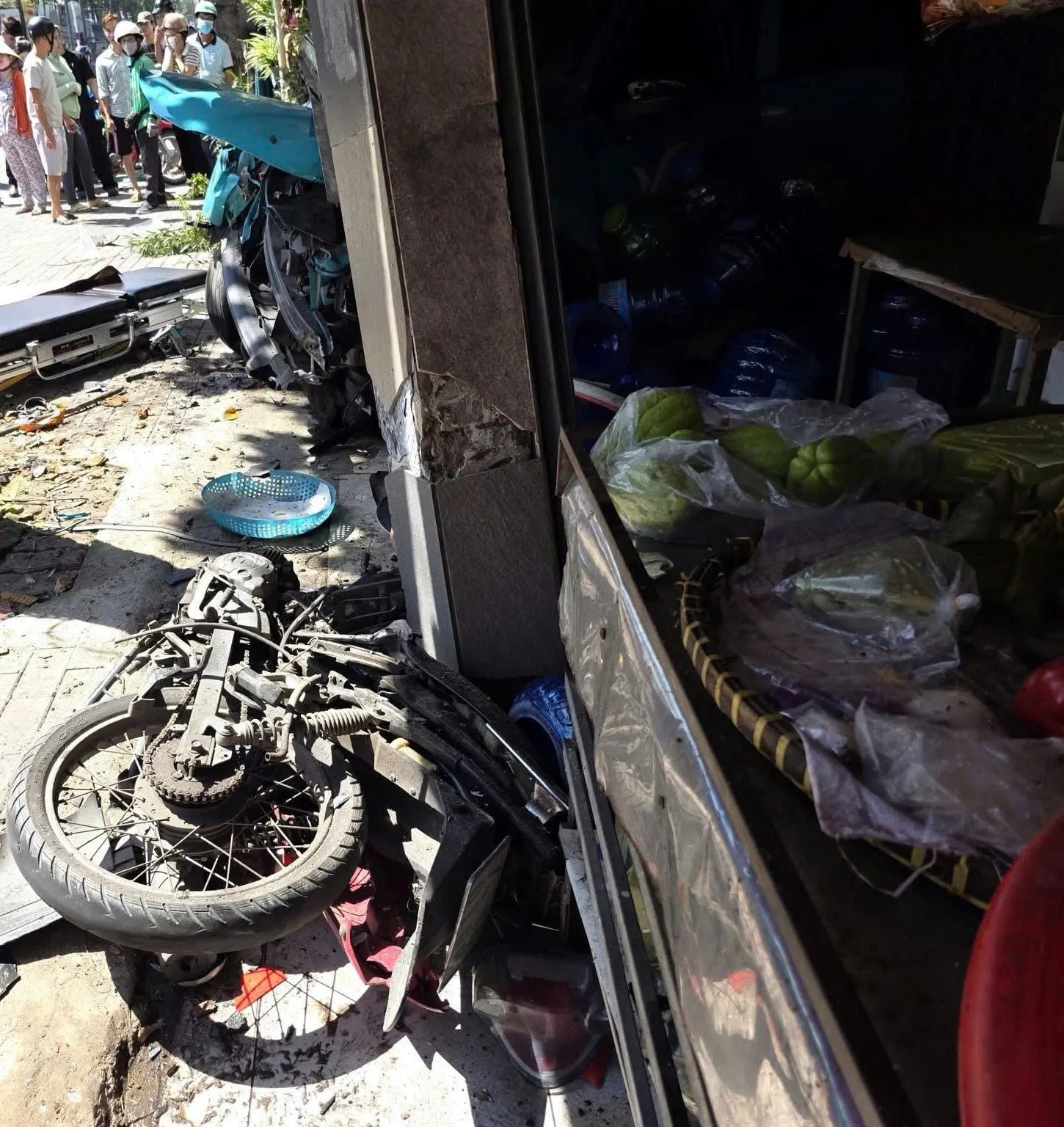 Tại hiện trường, xe ô tô con trong tình trạng tông sập cửa cuốn và lao thẳng vào một nhà dân ven đường. Cú va chạm mạnh khiến ô tô và ngôi nhà bị hư hỏng nặng, bên cạnh đó còn có xe máy vỡ nát. Một nạn nhân chưa xác định danh tính tử vong trên vỉa hè.