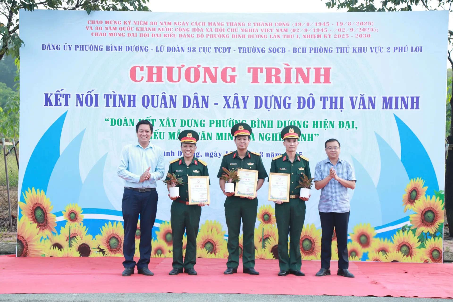 Kinhtedothi - Sáng 16/8, Đảng ủy phường Bình Dương phối hợp cùng Lữ đoàn 98, cục Tác chiến điện tử; Trường Sĩ quan công binh; Ban chỉ huy phòng thủ Khu vực II - Phú Lợi cùng các hội, đoàn trên địa bàn tổ chức chuỗi sự kiện nhằm nêu cao tinh thần “kết nối tình quân dân - xây dựng đô thị văn minh”.
