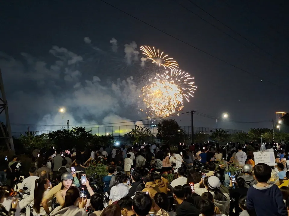 Hàng nghìn người dân đã đổ về khu vực Thành phố mới, phường Bình Dương để tận mắt chứng kiến khoảnh khắc rực rỡ mở màn cho một năm đầy hứa hẹn. Ảnh: Lâm Thiện