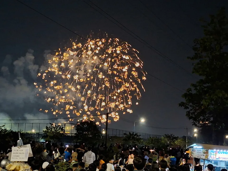Những tiếng nổ giòn tan của pháo hoa hòa cùng tiếng cười reo của đông đảo người dân và du khách đã tạo nên một bầu không khí náo nhiệt khắp thành phố trong đêm giao thừa. Ảnh: Cẩm Viên