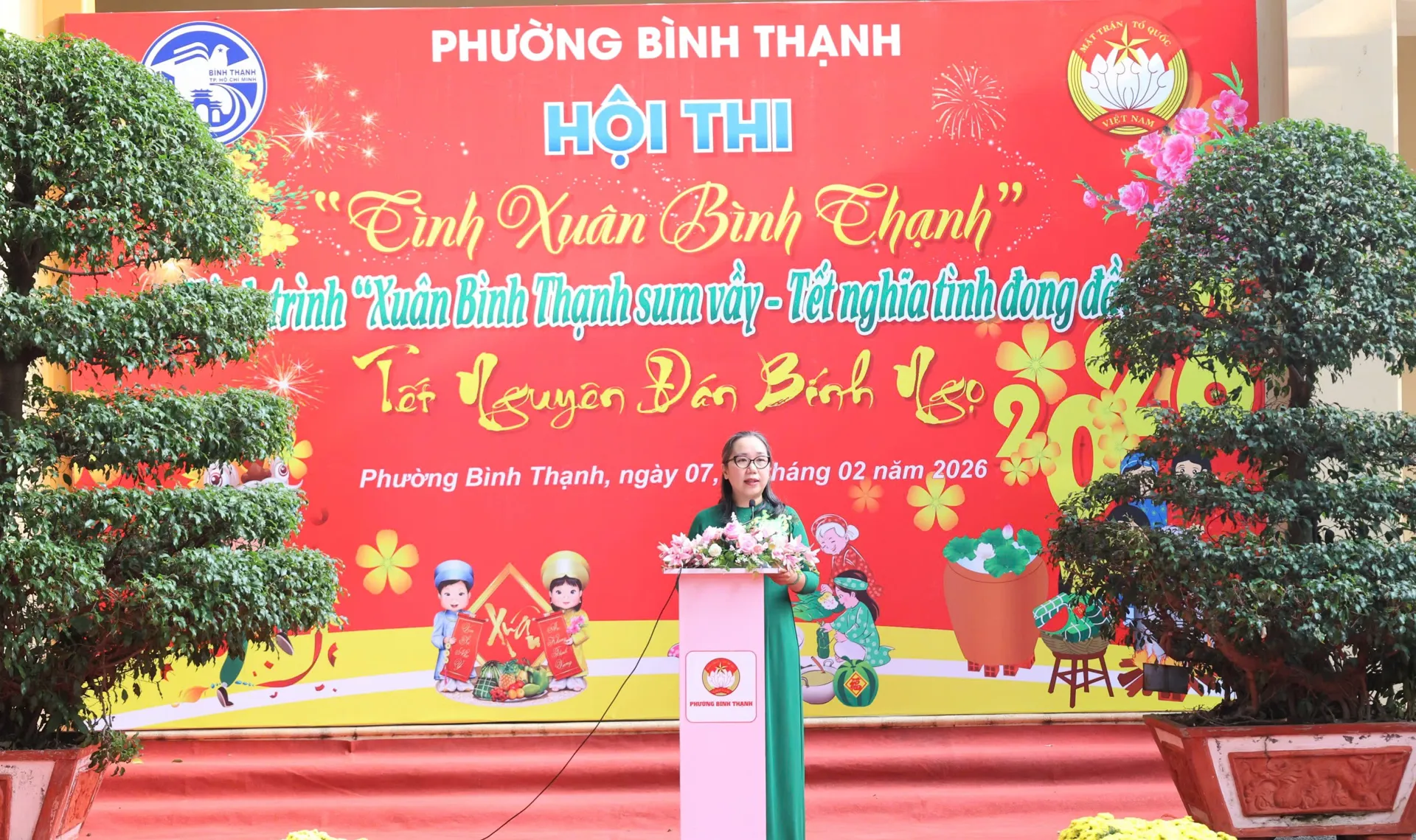 Phát biểu tại hội thi “Tình Xuân Bình Thạnh”, Chủ tịch Ủy ban MTTQ Việt Nam phường Bình Thạnh Hoàng Mai Quỳnh Hoa cho biết, hội thi là hoạt động mang ý nghĩa nhân văn sâu sắc, thể hiện rõ vai trò nòng cốt của MTTQ trong việc tập hợp, đoàn kết và phát huy sức mạnh của khối đại đoàn kết toàn dân tộc. Thông qua những hình ảnh quen thuộc của ngày Tết cổ truyền như mâm cơm sum họp, bánh chưng, bánh tét, trang phục truyền thống…, hội thi góp phần gìn giữ, tôn vinh và lan tỏa các giá trị văn hóa tốt đẹp của dân tộc Việt Nam trong đời sống cộng đồng.