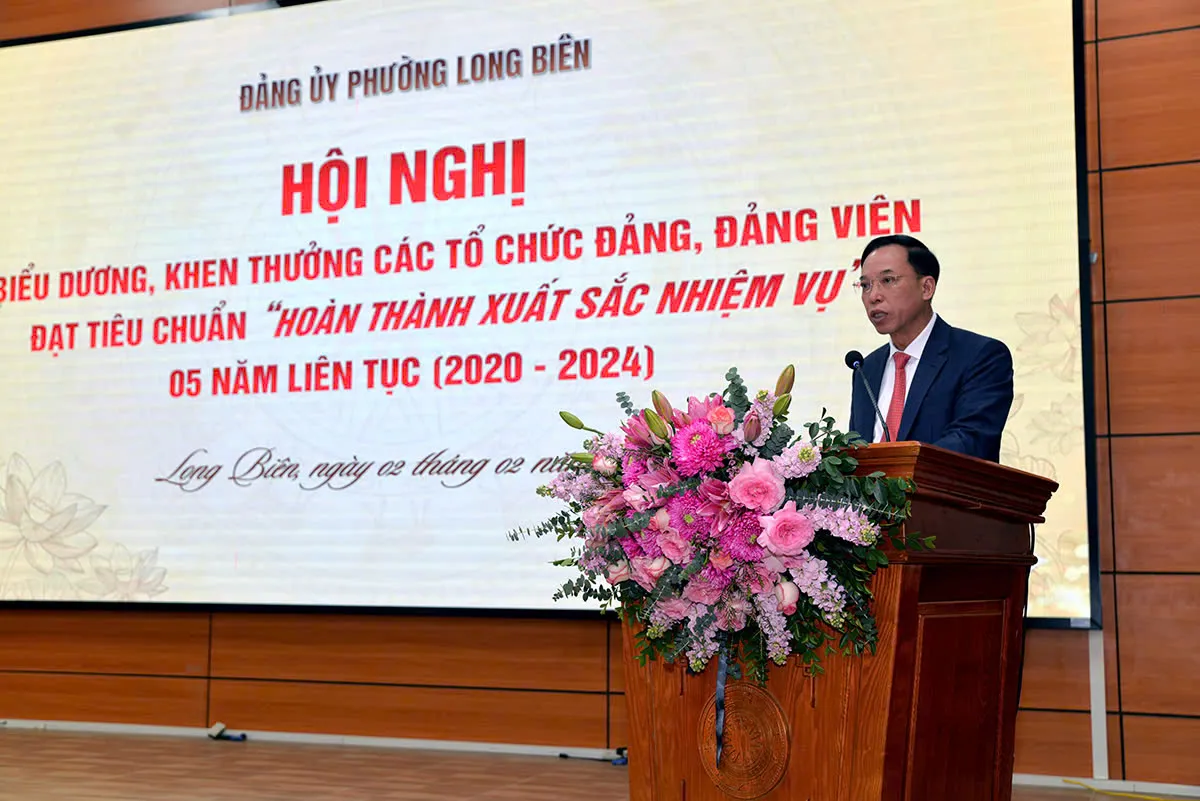 Cũng trong dịp này, phường Long Biên tổ chức Hội nghị Biểu dương, khen thưởng các tổ chức Đảng, đảng viên đạt tiêu chuẩn "Hoàn thành xuất sắc nhiệm vụ 5 năm liên tục (2020 - 2024).