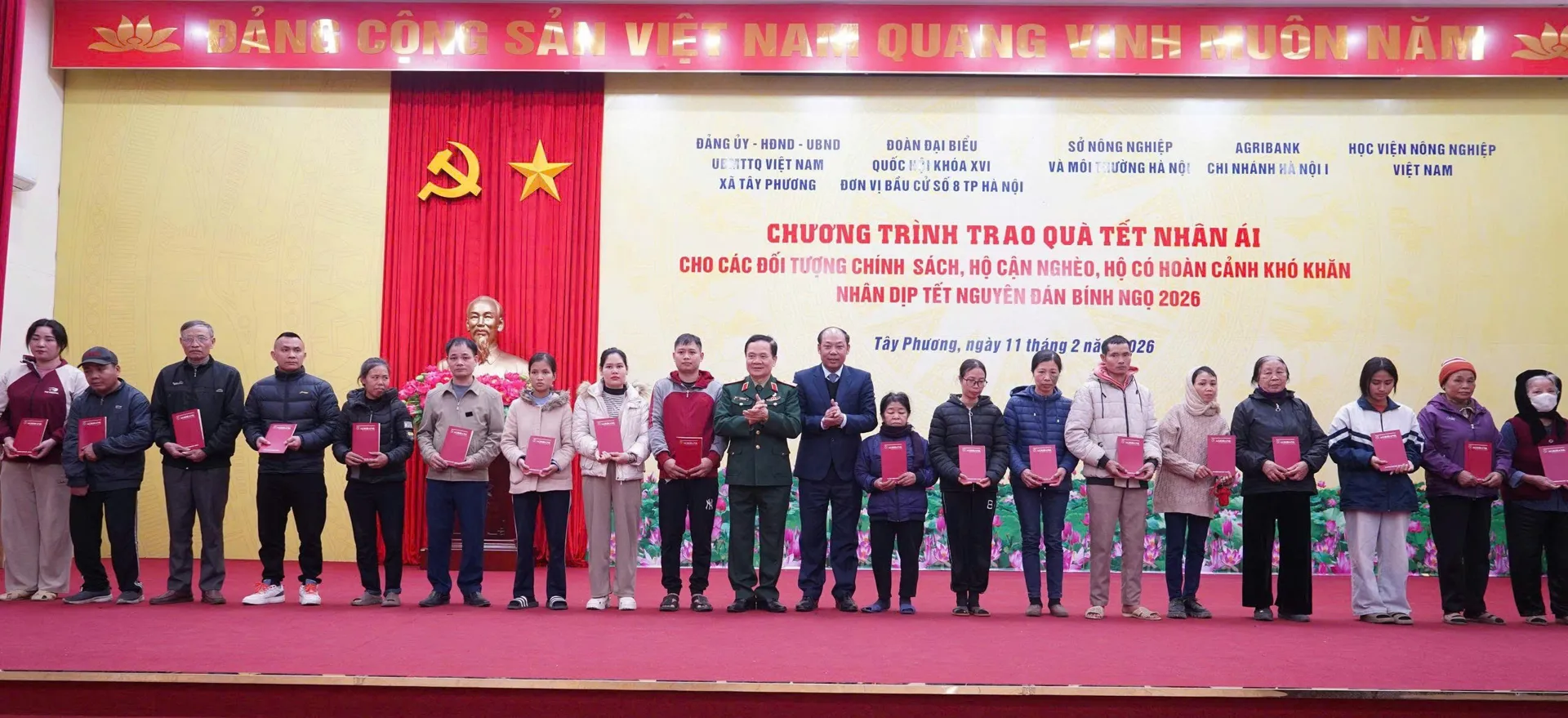 Chương trình có sự tham dự của Ủy viên chuyên trách Hội đồng Dân tộc của Quốc hội Lê Nhật Thành; Phó Chủ tịch Hội Cựu chiến binh Việt Nam Trung tướng Khuất Việt Dũng; đại diện Học viện Nông nghiệp Việt Nam; lãnh đạo Sở Nông nghiệp và Môi trường Hà Nội; Chủ tịch UBND xã Tây Phương Cấn Văn Hương cùng lãnh đạo cấp ủy, chính quyền, Ủy ban MTTQ Việt Nam xã Tây Phương và các tổ chức chính trị - xã hội địa phương. Đại diện Ngân hàng Nông nghiệp và Phát triển nông thôn Việt Nam (Agribank) Chi nhánh Hà Nội I và Chi nhánh Thạch Thất cũng tham dự và đồng hành trao quà.