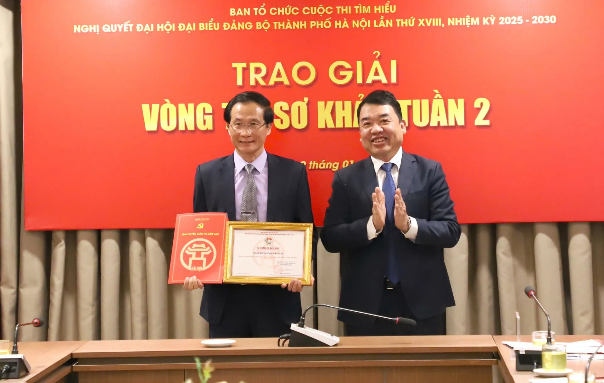 Kinhtedothi - Chiều 19/1, Ban Tổ chức Cuộc thi tìm hiểu Nghị quyết Đại hội đại biểu Đảng bộ TP Hà Nội lần thứ XVIII, nhiệm kỳ 2025-2030 tổ chức trao giải Vòng thi sơ khảo Tuần 2.