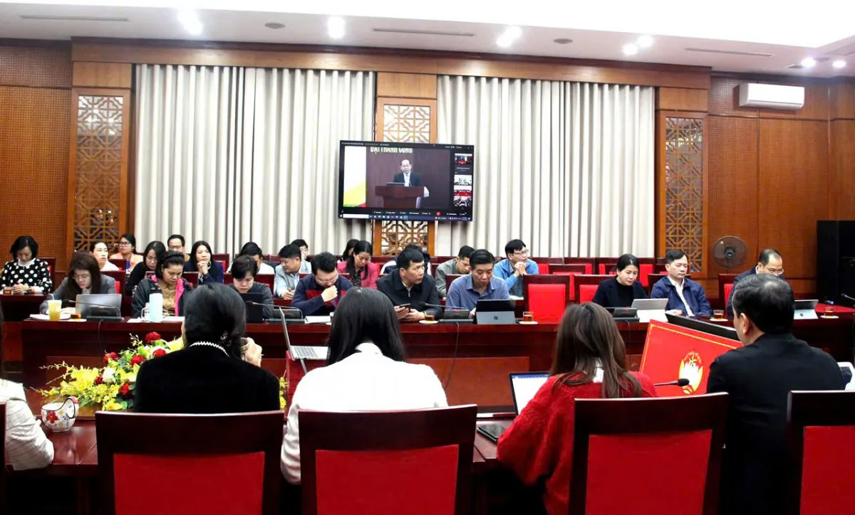 Các đại biểu tham dự tại điểm cầu trụ sở Ủy ban Mặt trận Tổ quốc Việt Nam TP Hà Nội