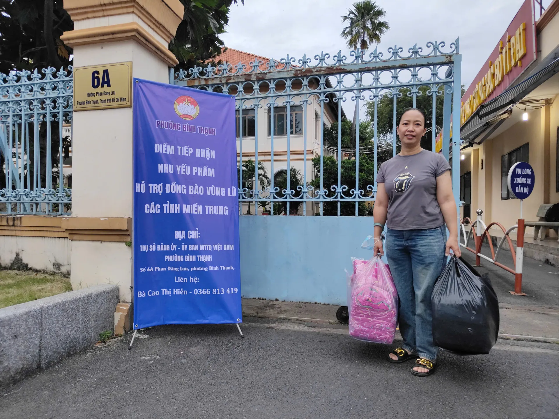 Chủ tịch Ủy ban MTTQ Việt Nam phường Bình Thạnh Hoàng Mai Quỳnh Hoa cho biết, tính đến 17 giờ ngày 22/11, phường đã nhận sự hỗ trợ hơn 3 tấn hàng hóa là nhu yếu phẩm để gửi đền đồng bào tỉnh Khánh Hòa. Còn tại xã Nhà Bè, Chủ tịch Ủy ban MTTQ Việt Nam xã Nguyễn Hòa cho biết, ngay sau khi TP có văn bản, xã đã phát động và đến thời điểm này chưa thể thống kê số lượng hàng hóa mà người dân đóng góp.