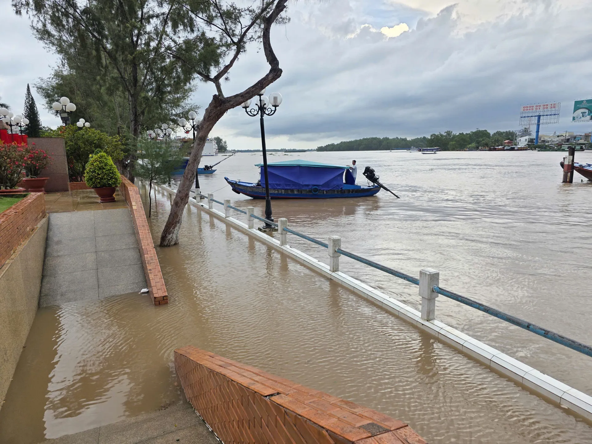 Theo Đài Khí tượng thủy văn TP Cần Thơ, chiều 8/10, mực nước triều cường tại trạm Cần Thơ trên sông Hậu tiếp tục lên cao vào lúc 17 giờ 30 phút - 18 giờ, đạt mức 2,24m, vượt báo động III.