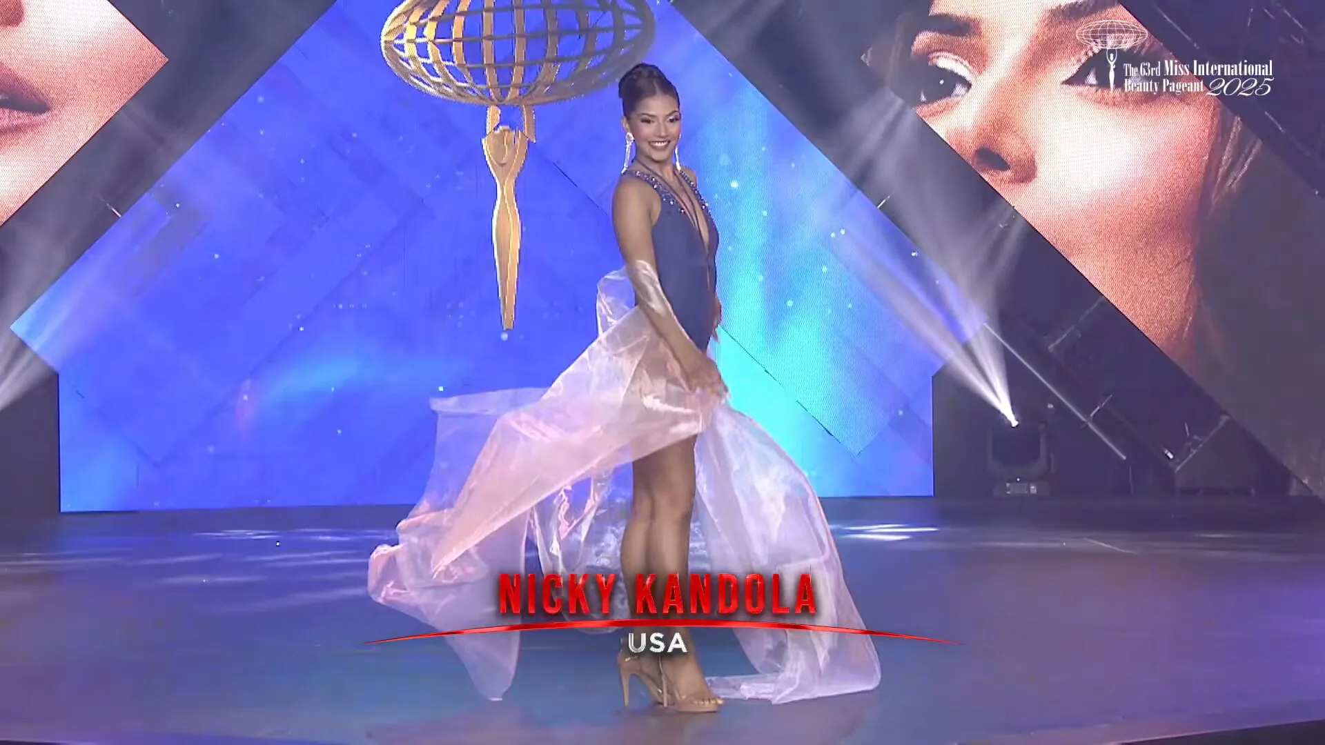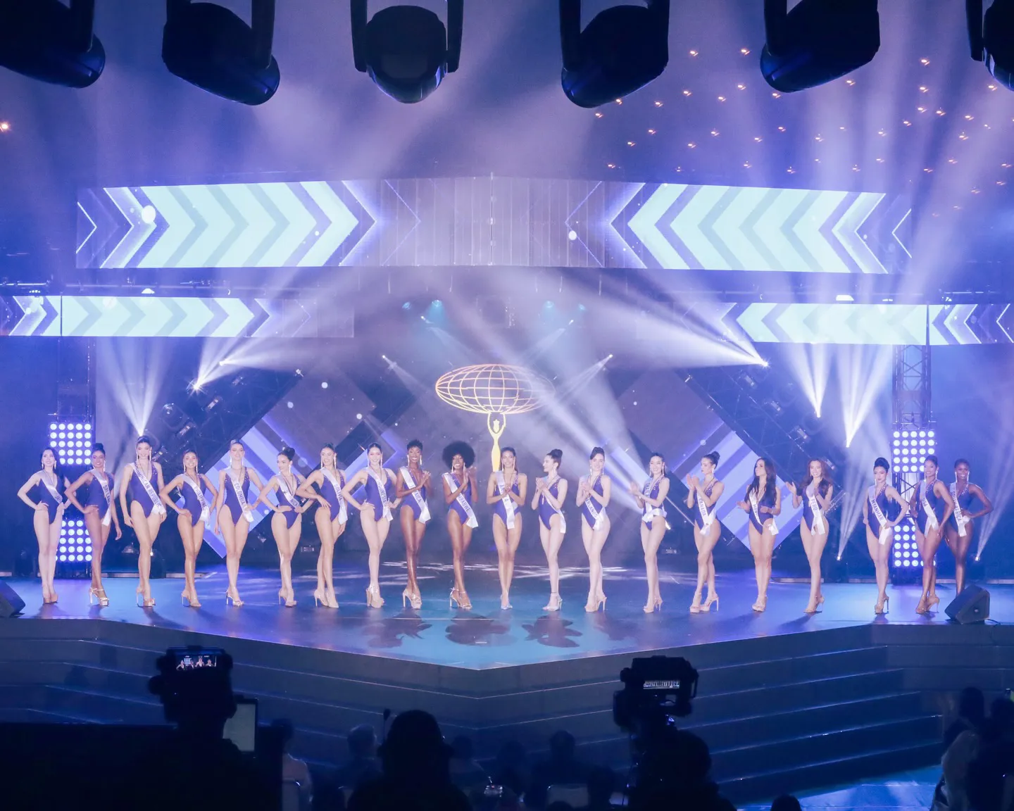 Top 20 Miss International 2025 trên sân khấu chung kết. Ảnh chup màn hình