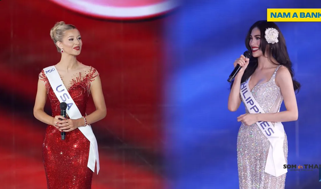 Top 2 thí sinh vào phần tranh hoa hậu gồm người đẹp Hoa Kỳ - Yolina Lindquist và  Philippines - Chelsea Fernandez.