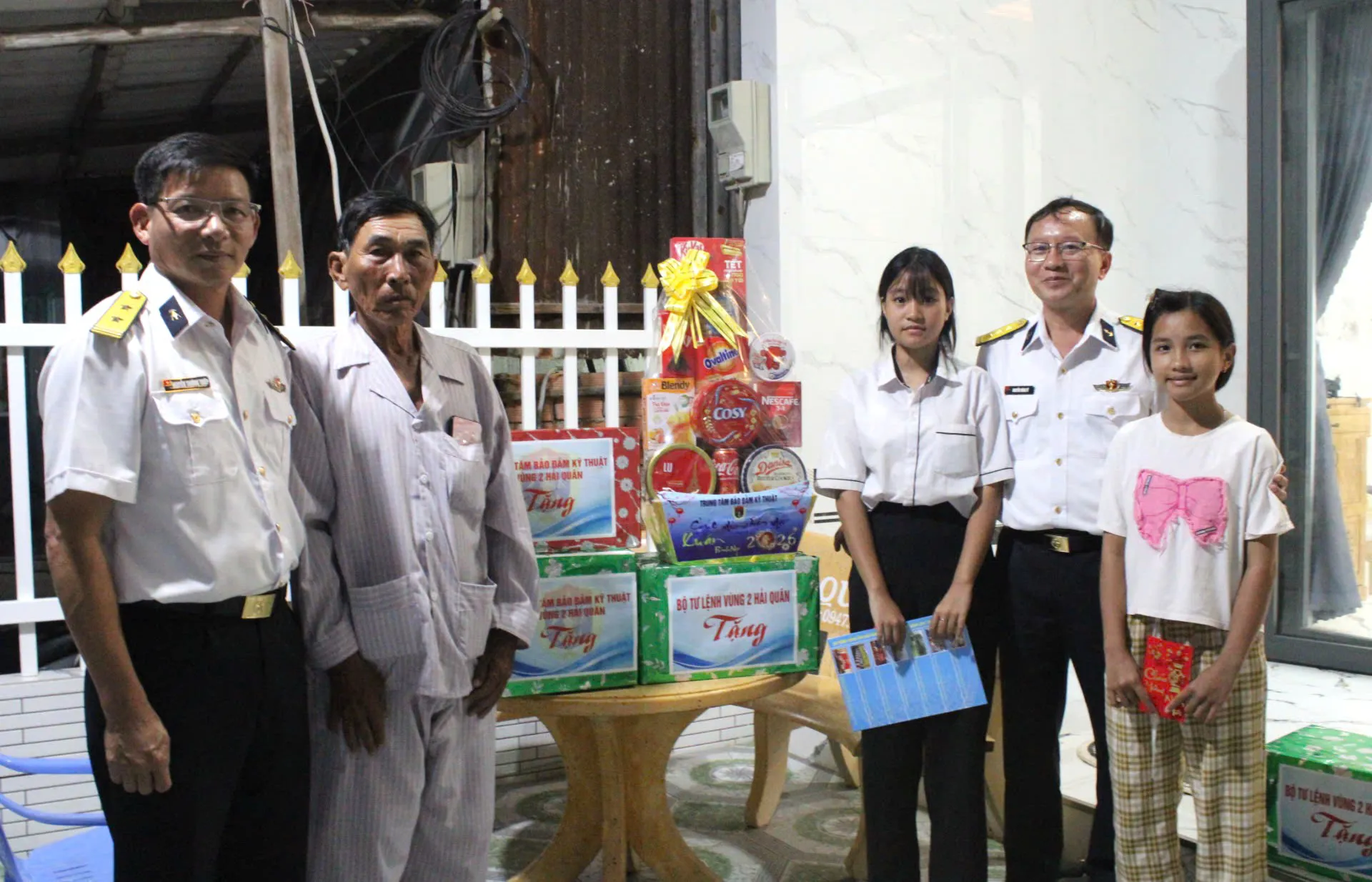 Nhân dịp Tết Nguyên đán Bính Ngọ năm 2026 sắp đến, đoàn công tác đã đến nhà của 5 cháu để trò chuyện, động viên các cháu và gia đình. Thay mặt cán bộ, chiến sĩ Trung tâm BĐKT, đoàn công tác đã trao tiền hỗ trợ quý I/2026 (1,5 triệu đồng/cháu), mừng tuổi các cháu dịp Tết Nguyên đán Bính Ngọ, hỗ trợ 2 triệu đồng/gia đình, cùng một số nhu yếu phẩm; đồng thời, đoàn công tác đã trao quà của Bộ Tư lệnh Vùng 2 Hải quân trị giá 3 triệu đồng/cháu, tổng giá trị hỗ trợ và quà tặng hơn 40 triệu đồng.