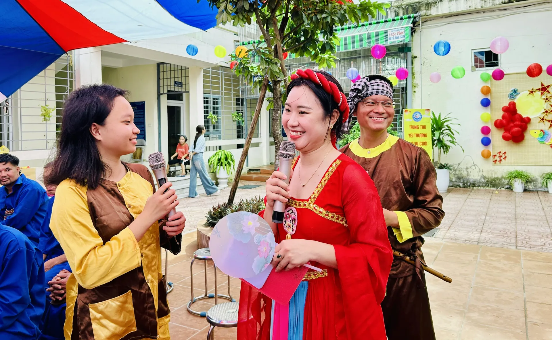Trẻ em tham gia trò chơi với chị Hằng và chú Cuội. Ảnh: Trần Oanh