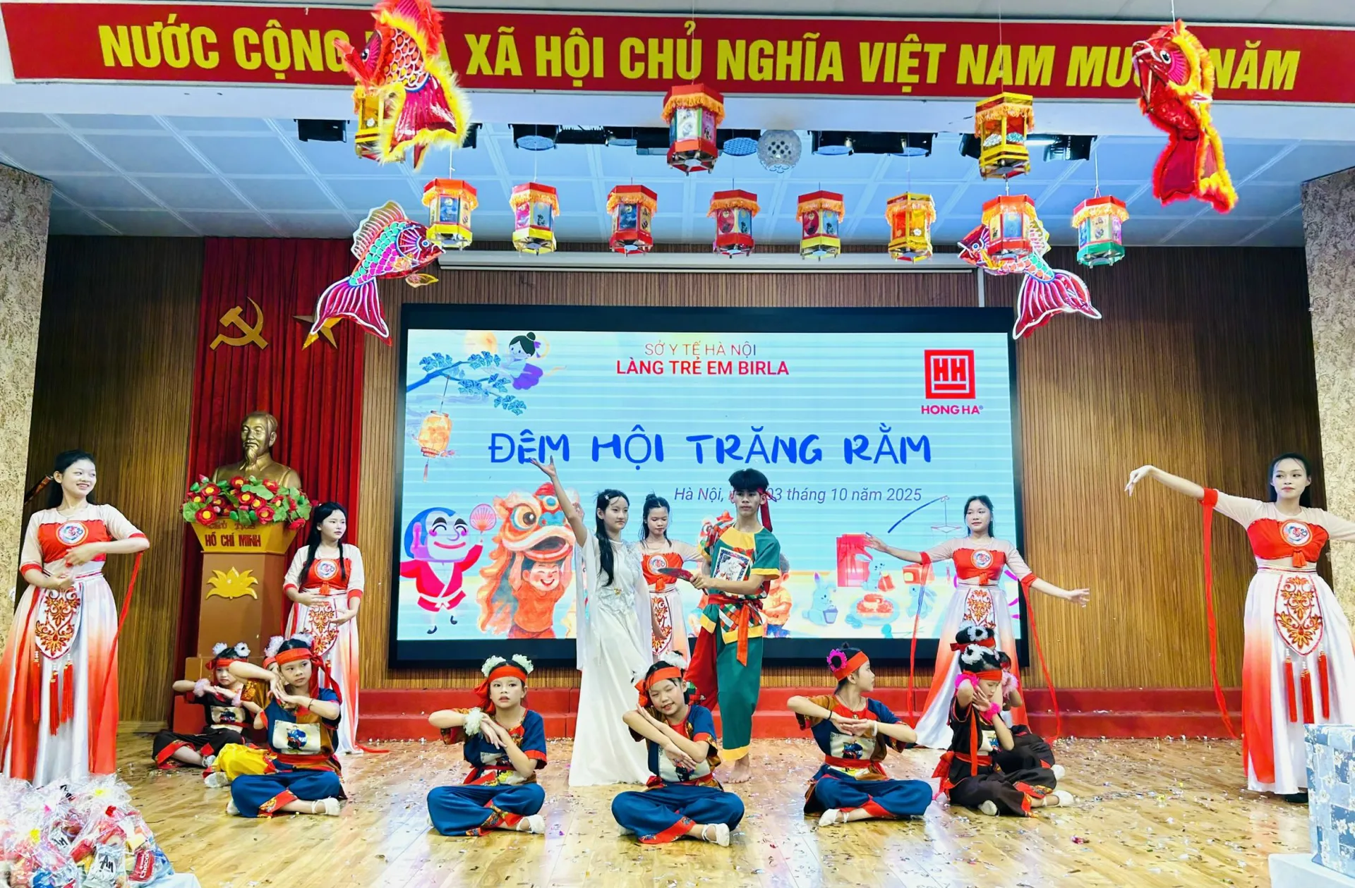 Trẻ em Làng Trẻ em Birla Hà Nội biểu diễn các tiết mục văn nghệ tại Đêm hội trăng rằm. Ảnh: Trần Oanh