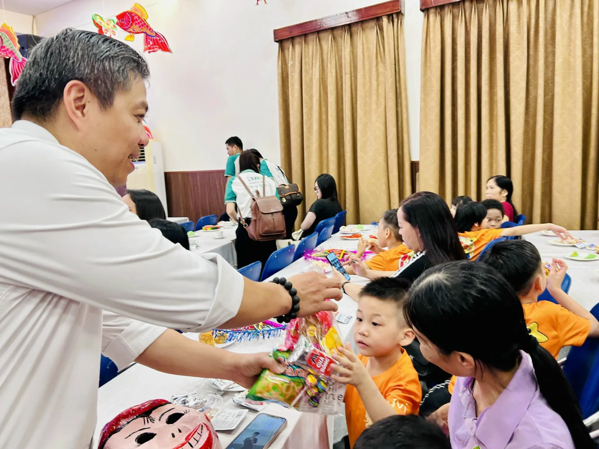 Ông Đoàn Thái Phong - Chủ tịch Công đoàn Công ty CP Văn phòng phẩm Hồng Hà phát quà cho trẻ em. Ảnh: Trần Oanh