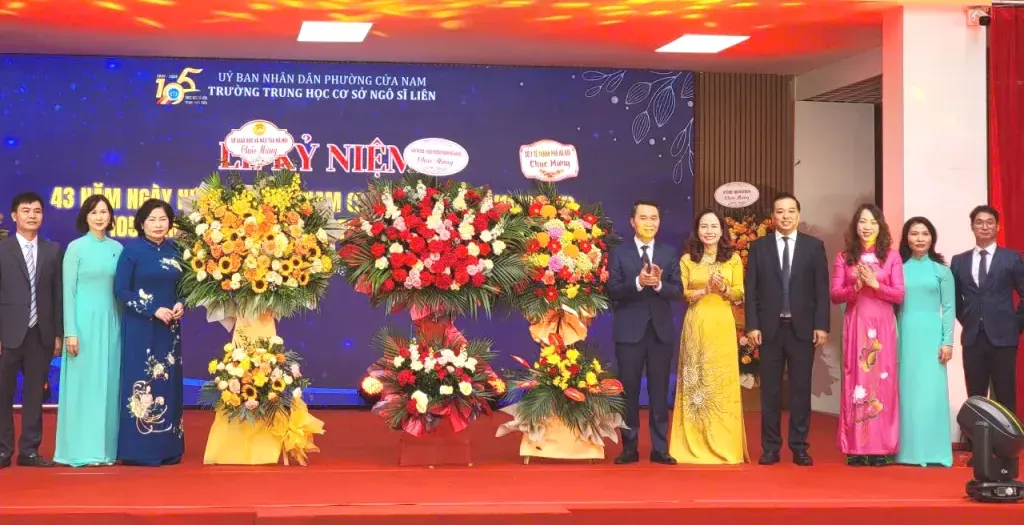 Sáng 17/11, Trường THCS Ngô Sĩ Liên (phường Cửa Nam, Hà Nội) tổ chức Lễ kỷ niệm 43 năm Ngày Nhà giáo Việt Nam (20/11/1982 - 20/11/2025) và 105 năm thành lập trường (1920 - 2025). Tham dự lễ kỷ niệm có đại diện lãnh đạo các bộ, ngành Trung ương, TP Hà Nội, phường Cửa Nam, các cựu giáo chức, cựu học sinh, phụ huynh và hơn 2.600 học sinh của trường.