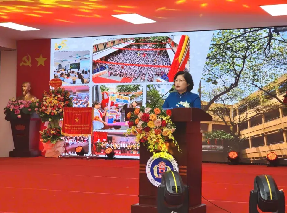 Đại diện lãnh đạo Sở GD&ĐT Hà Nội chúc mừng Trường THCS Ngô Sĩ Liên nhân 105 năm thành lập.