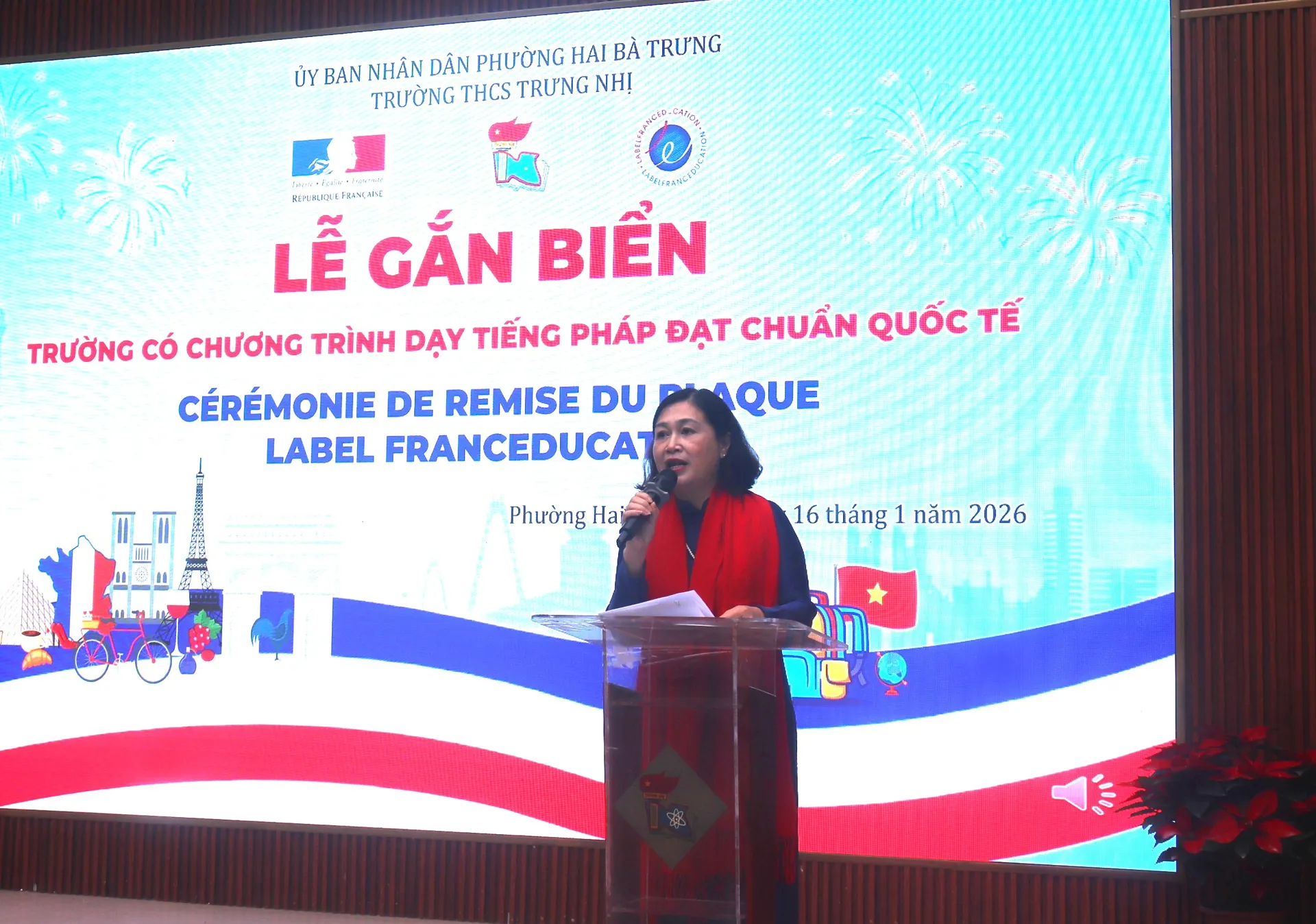 Hôm nay, 16/1, Trường THCS Trưng Nhị (phường Hai Bà Trưng) trang trọng tổ chức Lễ gắn biển "Trường có chương trình dạy tiếng Pháp đạt chuẩn quốc tế (LabelFrancEducation)" và Lễ sơ kết học kỳ I năm học 2025-2026.