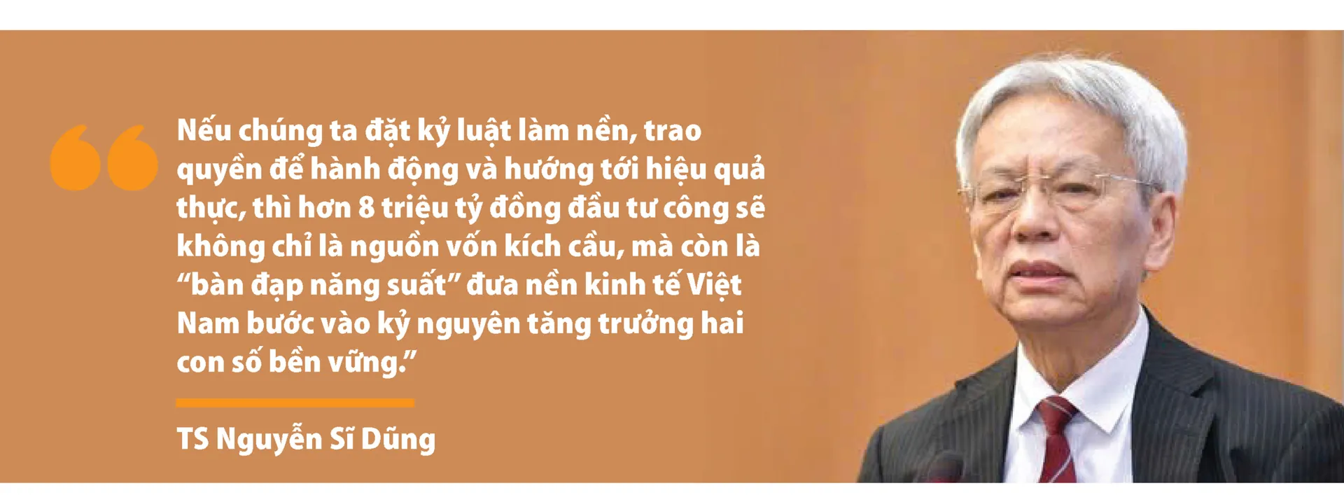 Dự kiến, khả năng cân đối vốn ngân sách cho Kế hoạch Đầu tư công trung hạn giai đoạn 2026 - 2030 khoảng 8,31 triệu tỷ đồng. Đây là giai đoạn nền kinh tế sẽ bứt phá với tăng trưởng hai con số, mà khởi đầu là năm 2026, với mục tiêu đang được dự thảo là tăng trưởng từ 10% trở lên. Ông có khuyến nghị gì để đầu tư công thực sự là đòn bẩy thúc đẩy tăng trưởng?