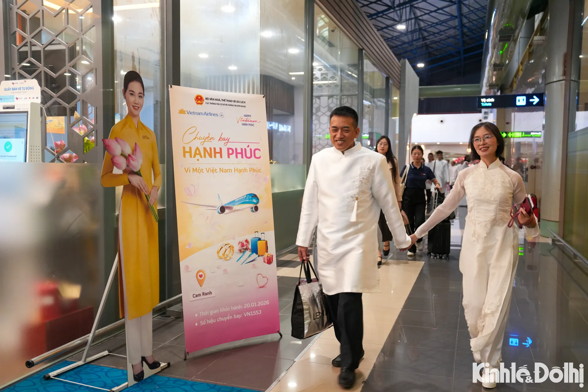 Hành trình hạnh phúc được bắt đầu ngay từ mặt đất. Tại khu vực check-in, hành khách trên chuyến bay VN1553 đã cảm nhận không khí hạnh phúc khác biệt. Màn hình FID hiển thị dòng chữ “Chuyến bay Hạnh phúc”, tuy chỉ là một chi tiết nhỏ nhưng đủ để mở ra cảm giác háo hức cho hành trình đầu năm, nơi cảm xúc của hành khách được đặt song hành cùng trải nghiệm bay.