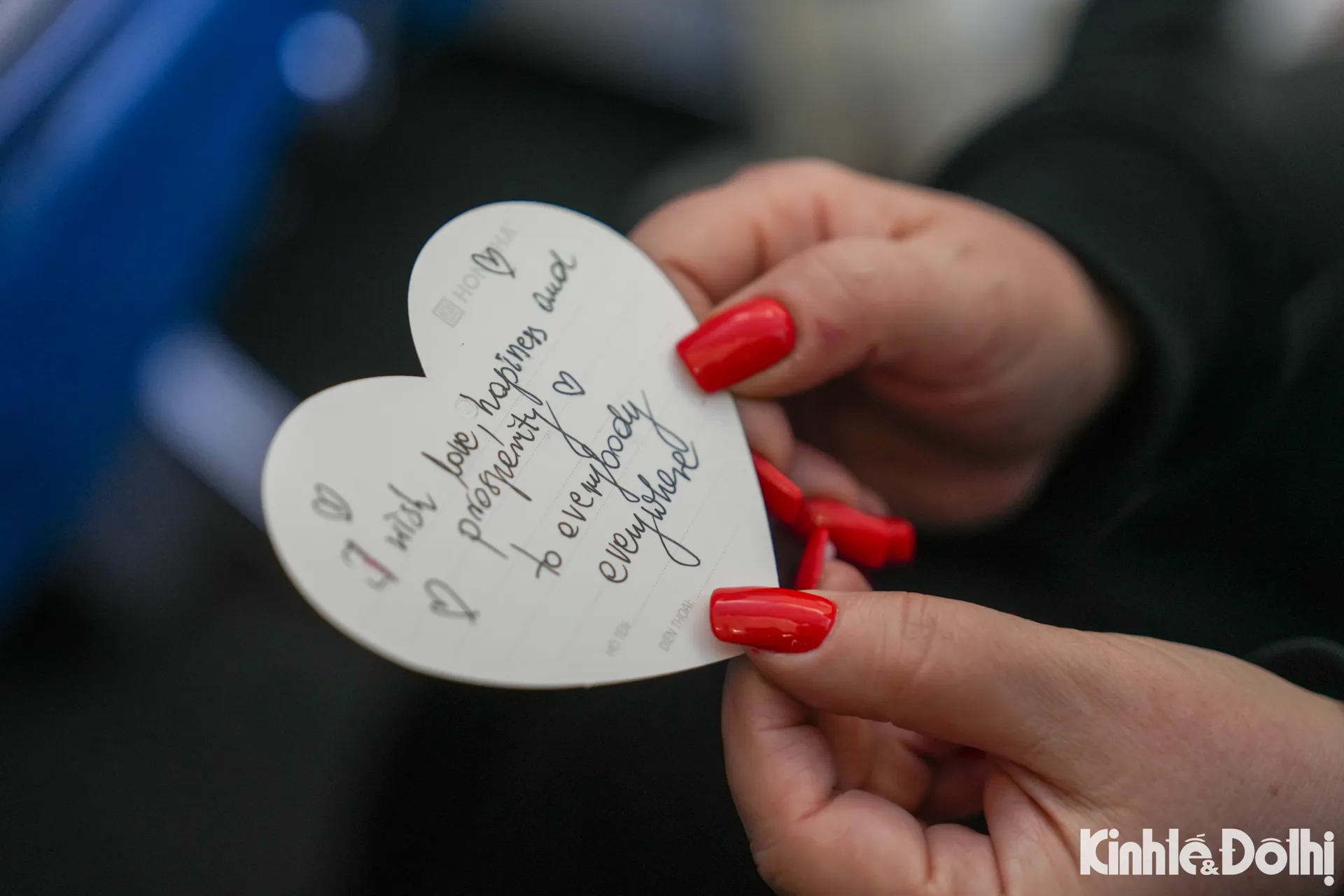 Trong không gian âm nhạc và những thanh âm hạnh phúc, mỗi hành khách viết nên lời chúc riêng trên những tấm thiệp, gửi gắm mong ước về một năm mới bình an, hạnh phúc cho gia đình và cho Việt Nam.