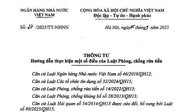 Thông tư số 27/2025/TT-NHNN ngày 15/9/2025.