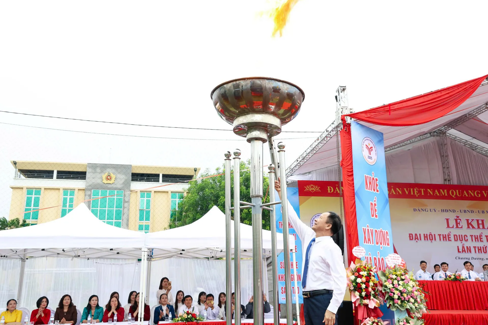 Khai mạc Đại hội, Bí thư Đảng ủy, Chủ tịch HĐND xã Chương Dương Vũ Văn Tuân đã thắp sáng đài lửa, tạo động lực cổ vũ, tiếp thêm sức mạnh và ý chí vươn lên, khát vọng giành chiến thắng cho các VĐV.